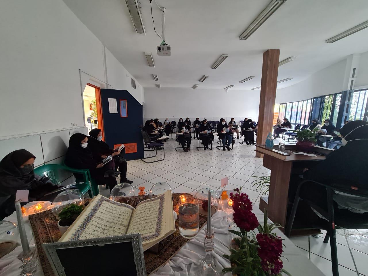 جلسه شوراي دبيران در اسفند ماه 1400با حضور مدیر و معاونین و دبیران محترم به همراه مراسم عیدانه اعیاد شعبانیه و برقراری مراسم دعای حدیث کسا برگزار شد