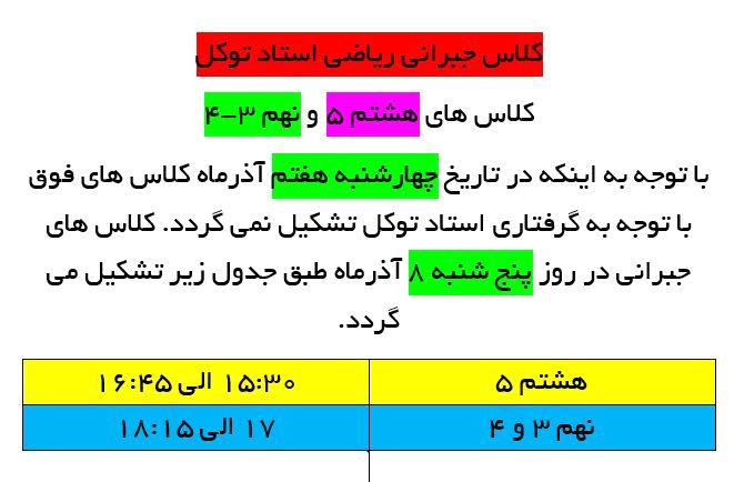 تغییر برنامه کلاس مجازی و کلاس جبرانی