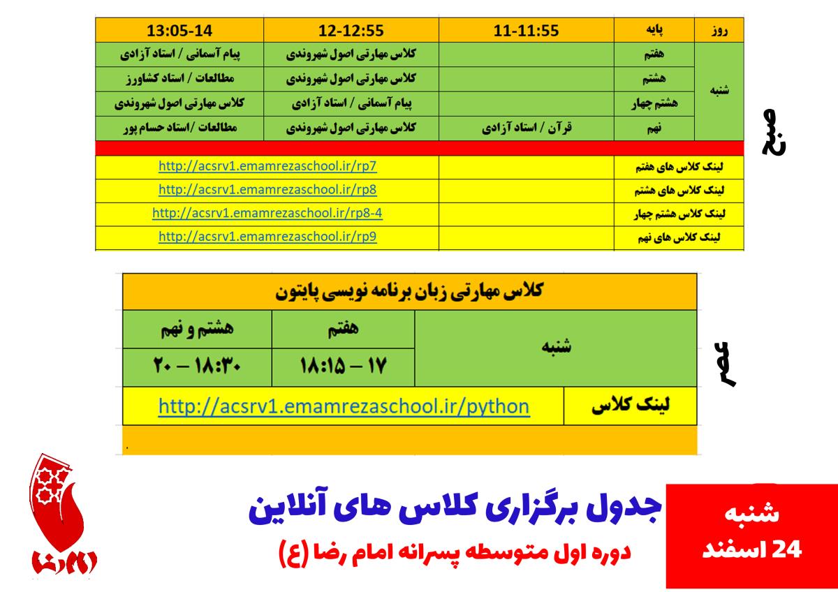 کلاس مجازی روز شنبه 24 اسفندماه