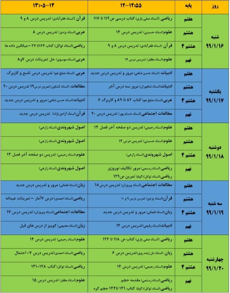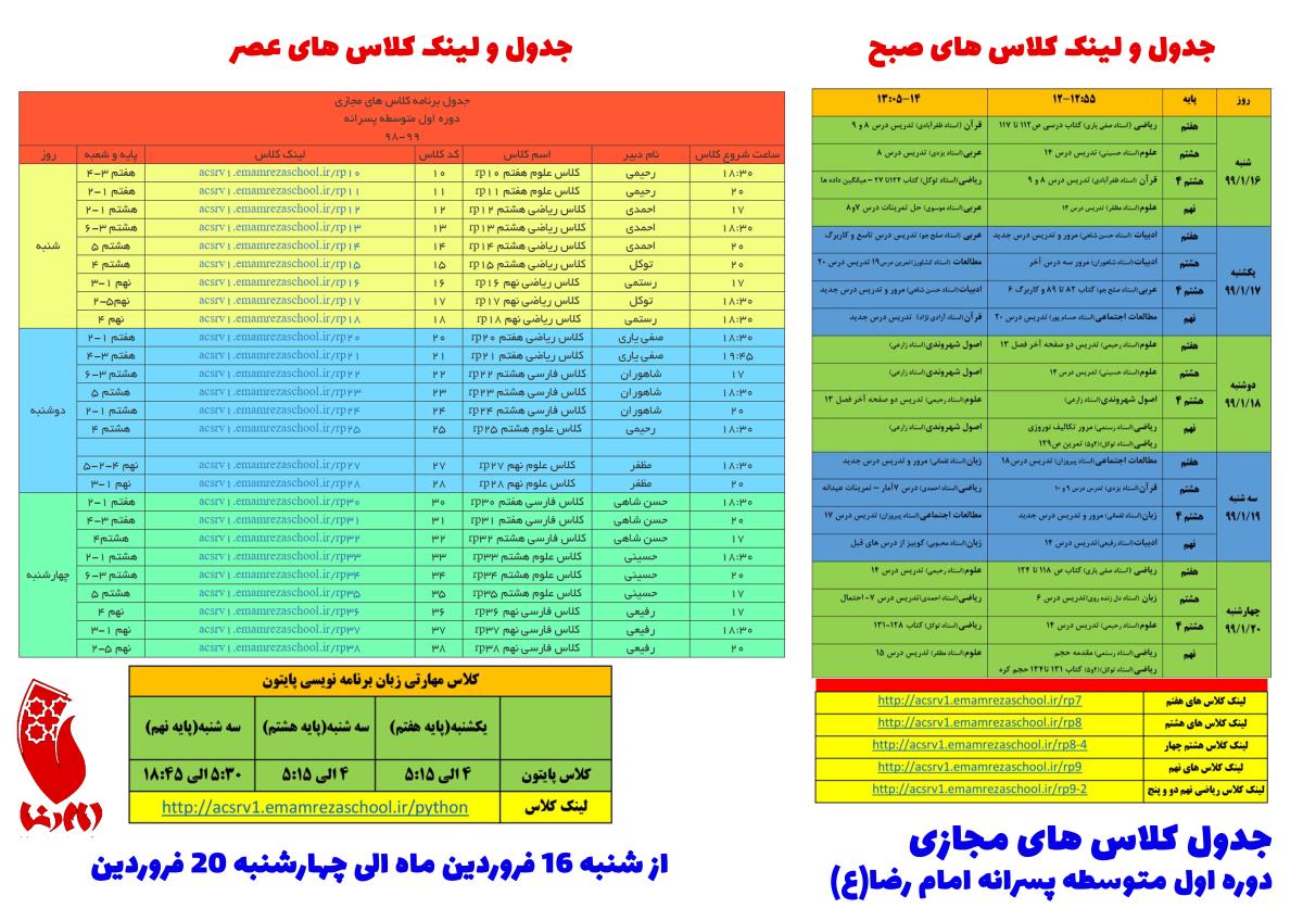 کلاس های مجازی از شنبه 16 فروردین ماه