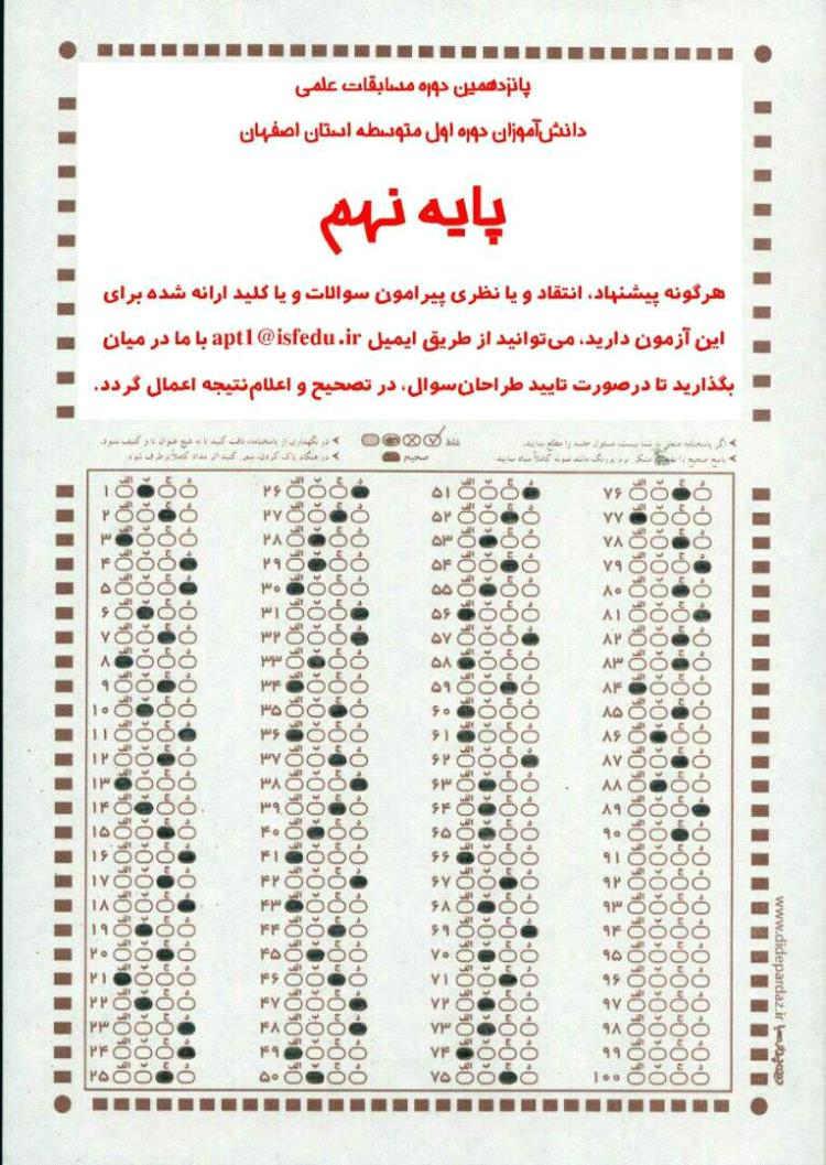 کلید آزمون پانزدهمین دوره مسابقات علمی دانش آموزان استان اصفهان اینجا را کلیک کنید .