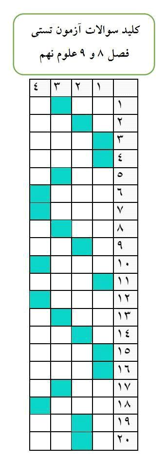 جهت دریافت کلید سوالات فصل 8 و 9 علوم تجربی پایه نهم اینجا را کلیک کنید .