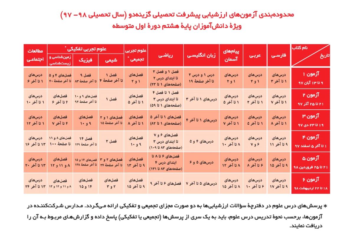 بودجه بندی آزمون های جامع ماهانه پایه های هفتم ، هشتم ، نهم