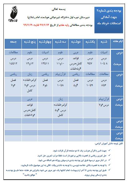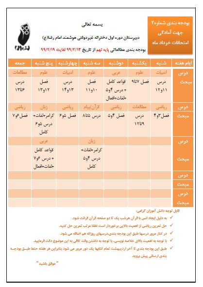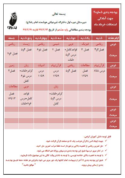برنامه مطالعاتی 13 تا 19 اردیبهشت