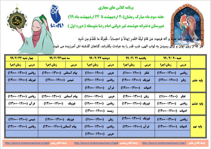 برنامه کلاسی هفته سوم ماه مبارک رمضان
