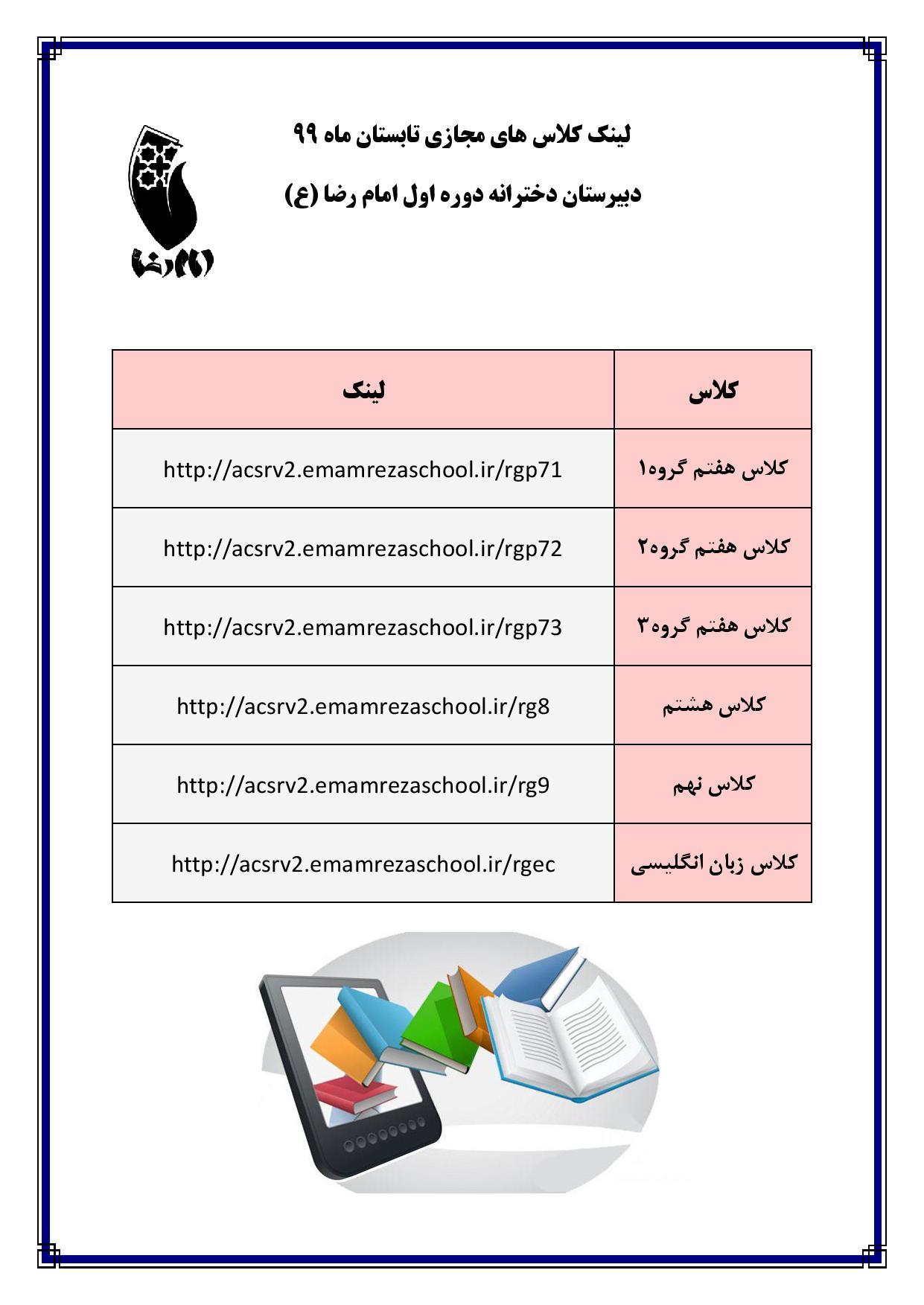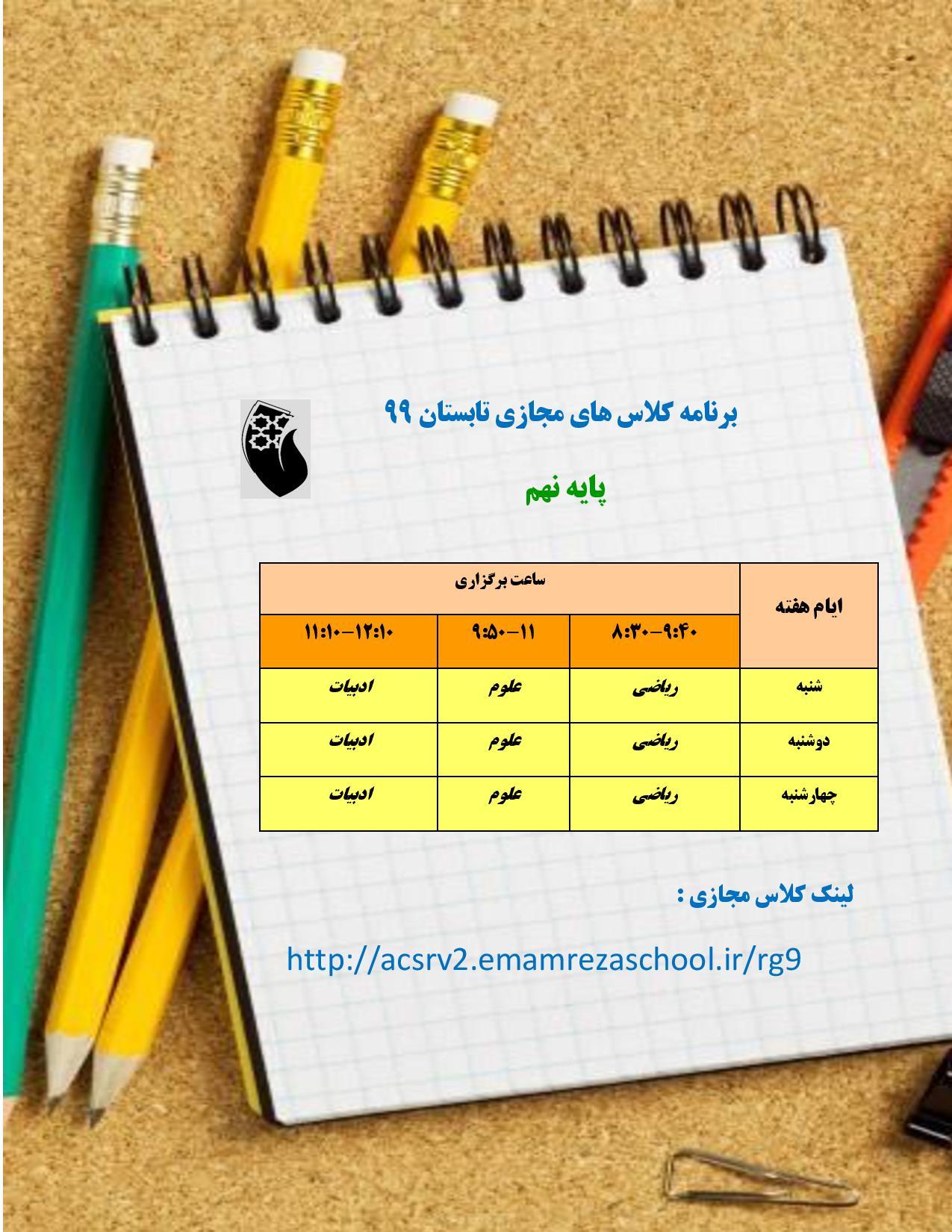 برنامه کلاسی و لینک ورود به کلاس های آموزش مجازی ویژه متقاضیان شرکت در کلاسهای تابستانی