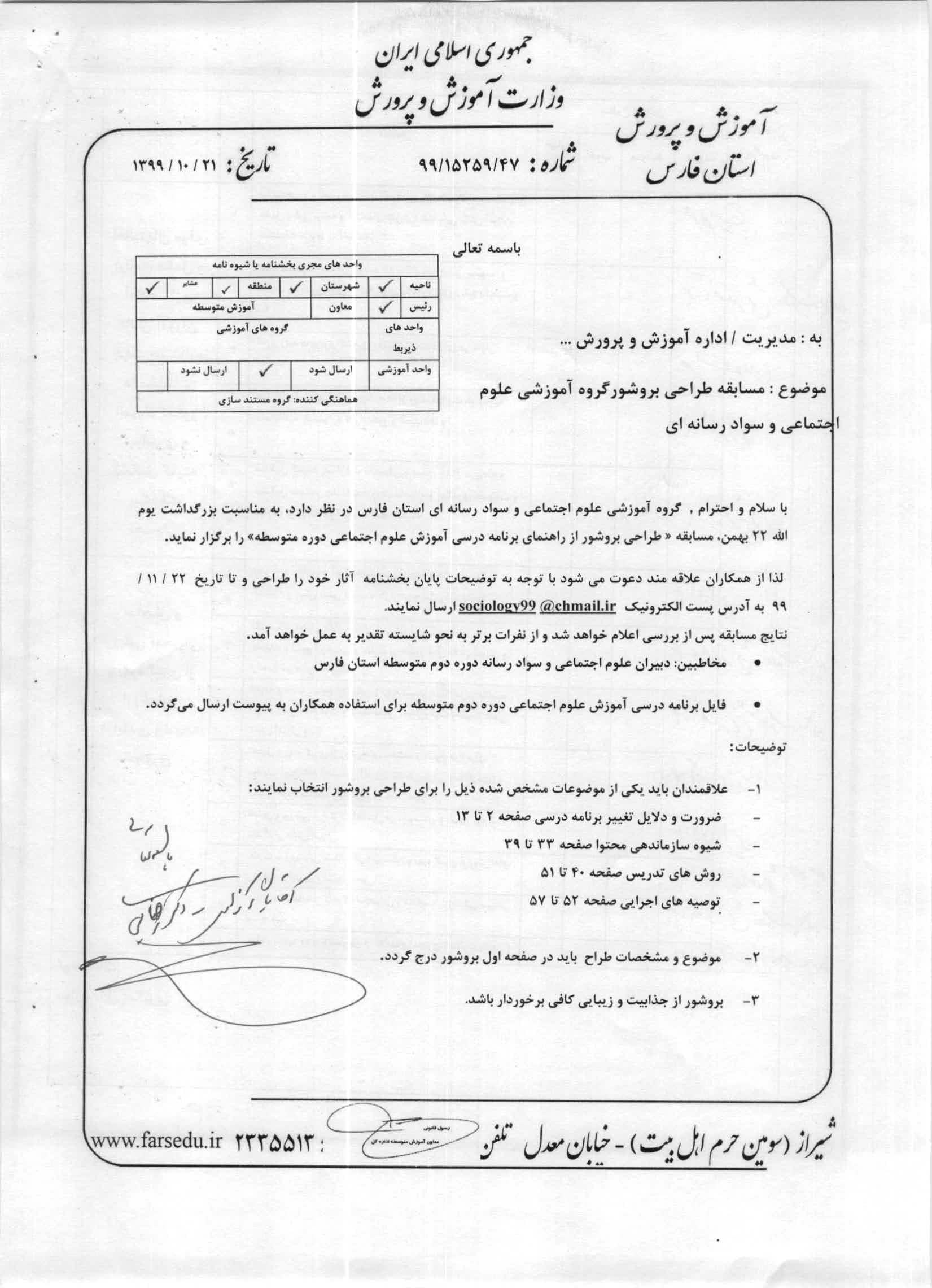 مسابقه طراحی بروشور گروه آموزشی علوم اجتماعی و سواد رسانه ایی