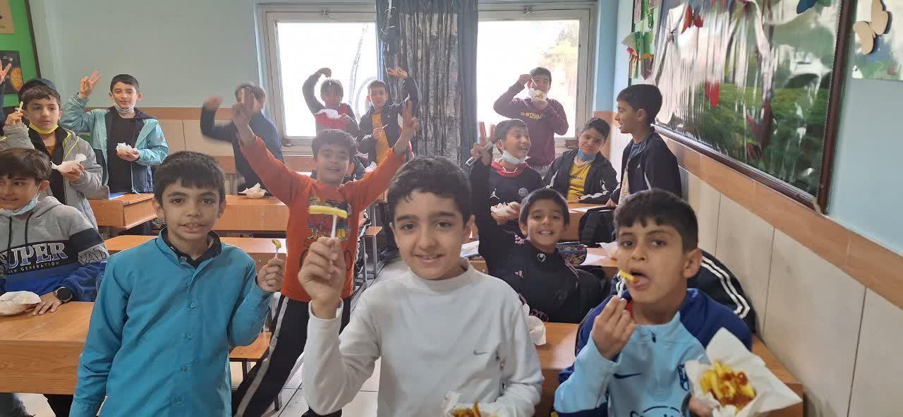 با همکاری انجمن اولیا و مربیان هم دانش آموزان با سیب زمینی سرخ شده پذیرایی شدند.