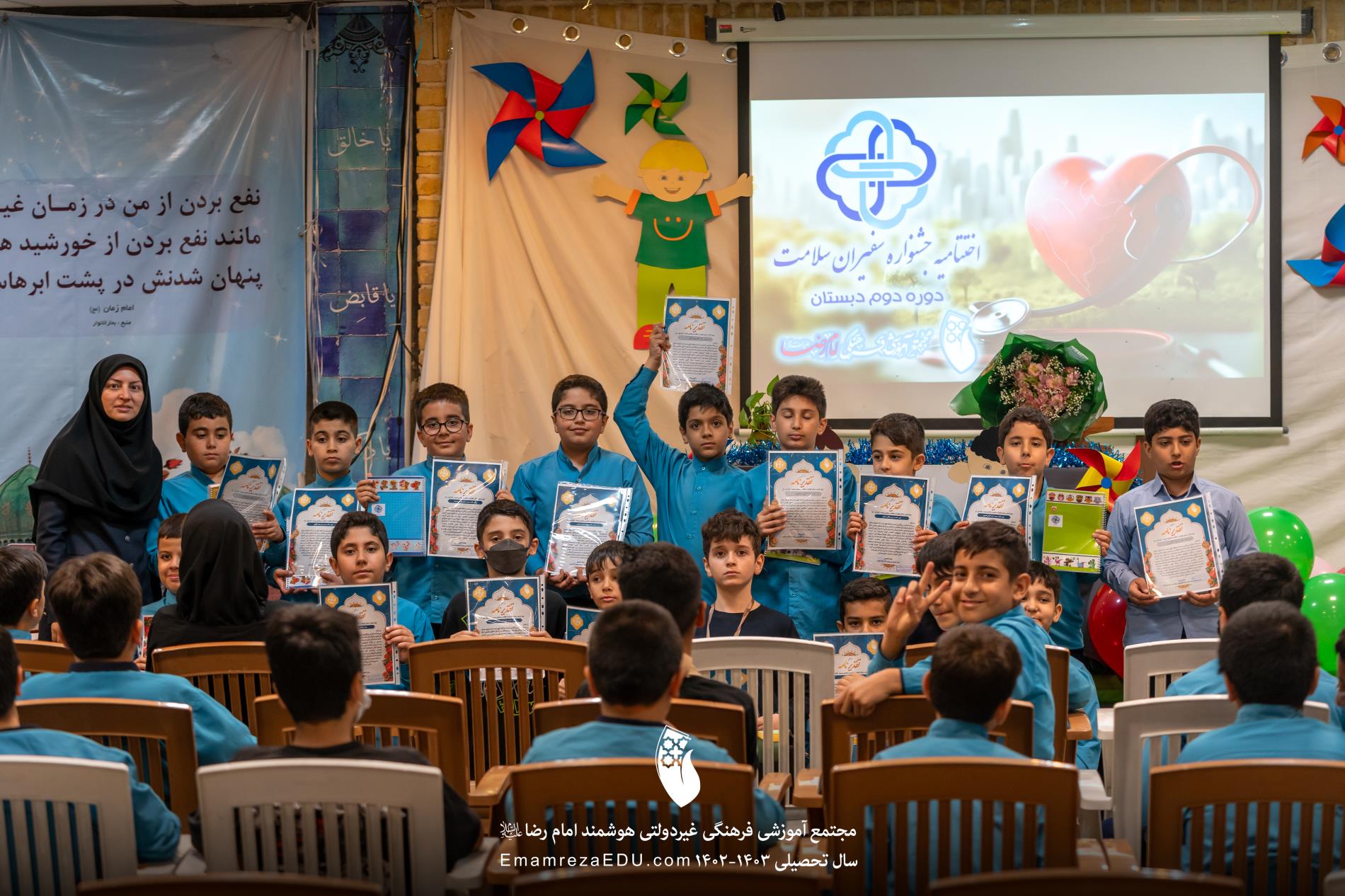 در پی انتخاب دانش آموزان علاقه مند به شرکت در فعالیتهای بهداشتی به عنوان سفیر سلامت در طول سال تحصیلی با هدف انتقال مفاهیم بهداشتی توسط دانش آموزان آموزش دیده به گروه همسالان ، جهت تقدیر و تشکر از این عزیزان و به پاس موفقیت در وظایف محوله و ایجاد انگیزه برای مشارکت دانش آموزان دیگر جشن اختتامیه سفیران سلامت در تاریخ 19 اردیبهشت سال 1403 همراه با اهدای لوح تقدیر و جایزه و پذیرایی برگزار گردید.