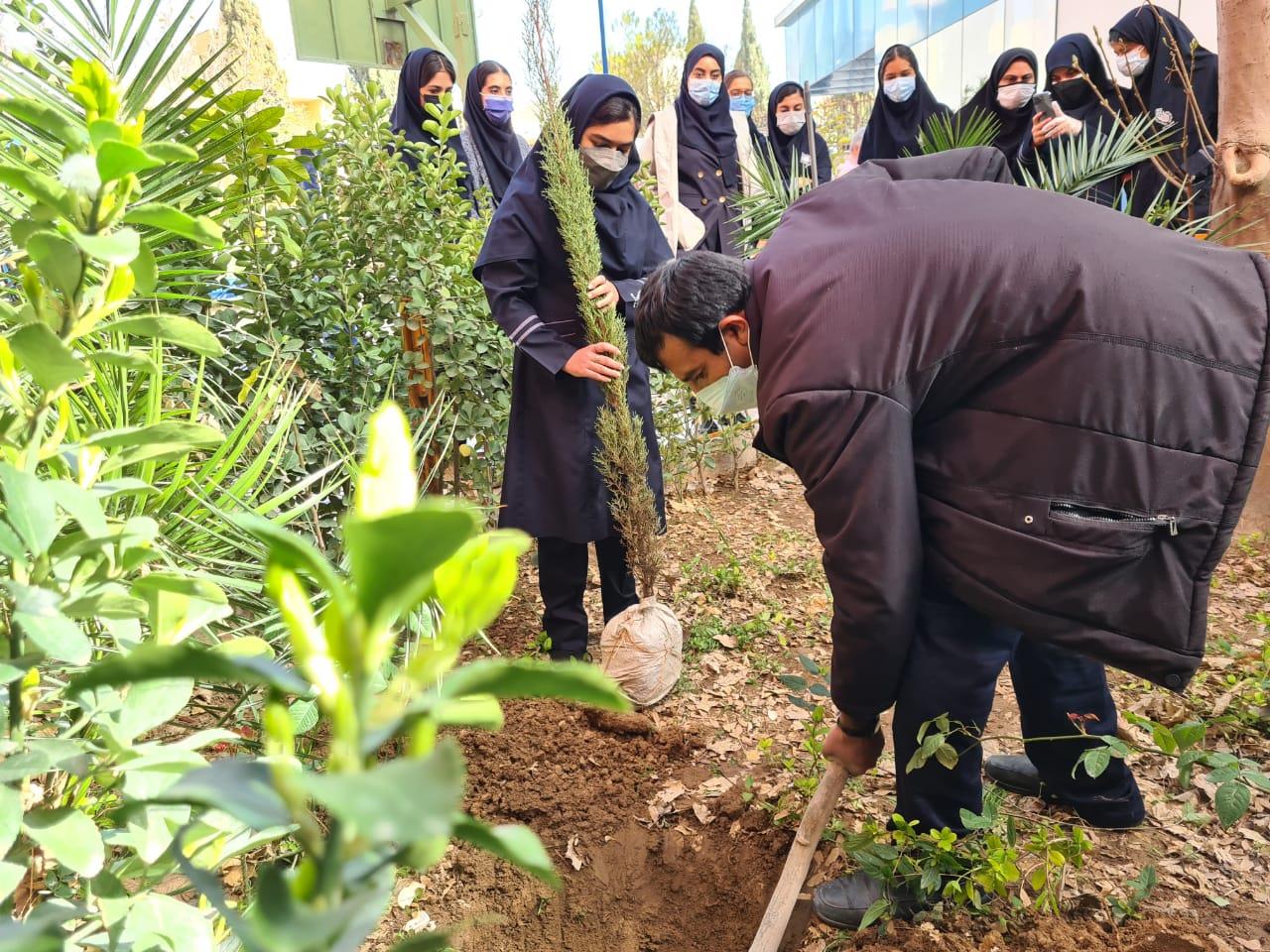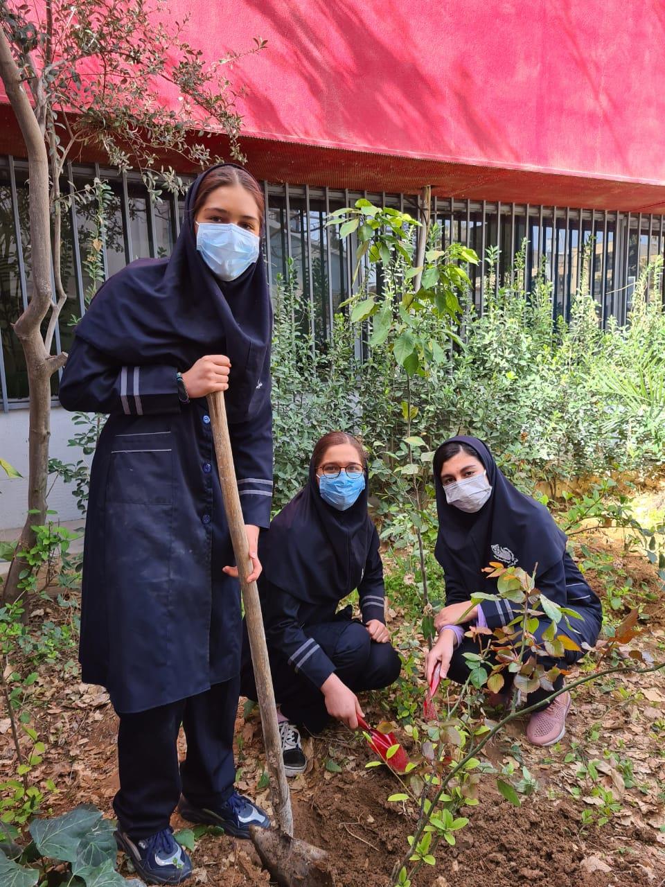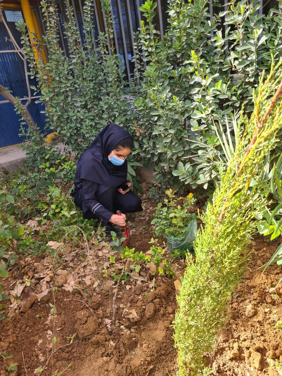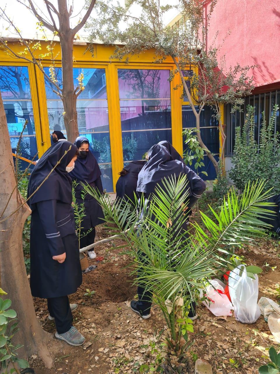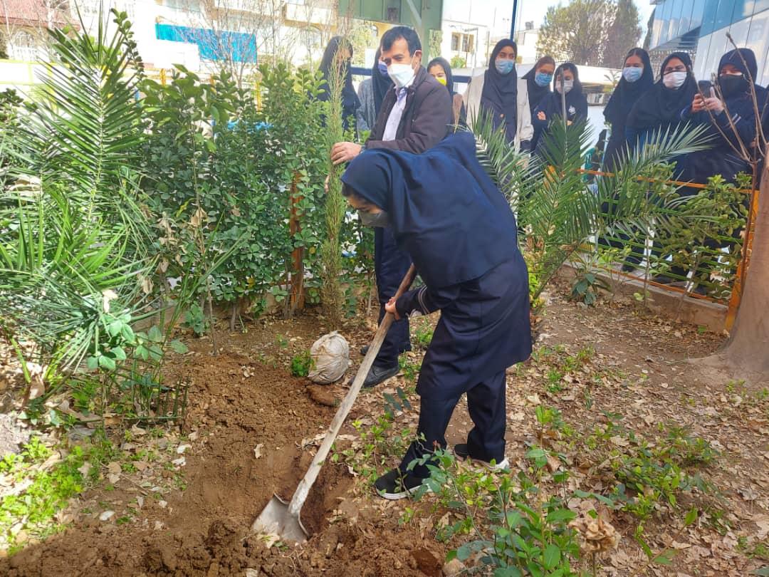 به مناسبت روز درختکاری در 15 اسفند 1400 به همراه جمعی از دانش اموزان و مدیر و معاونین و دبیرهای دبیرستان دخترانه امام رضا (ع) دوره اول نهال و گل کاشته شد.