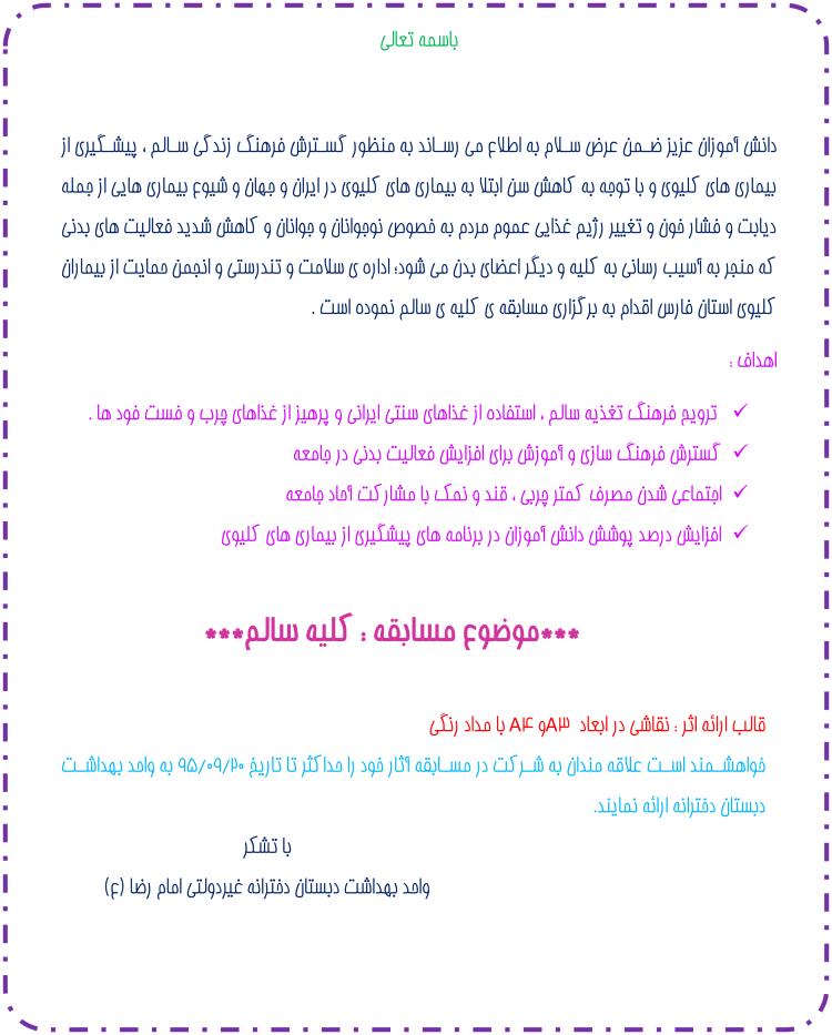 اطلاعیه مسابقه : کلیه سالم