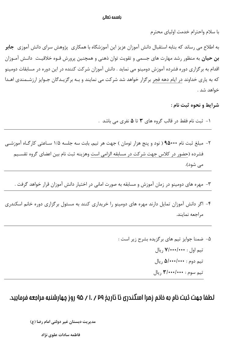 اطلاعیه : مسابقات دومینو