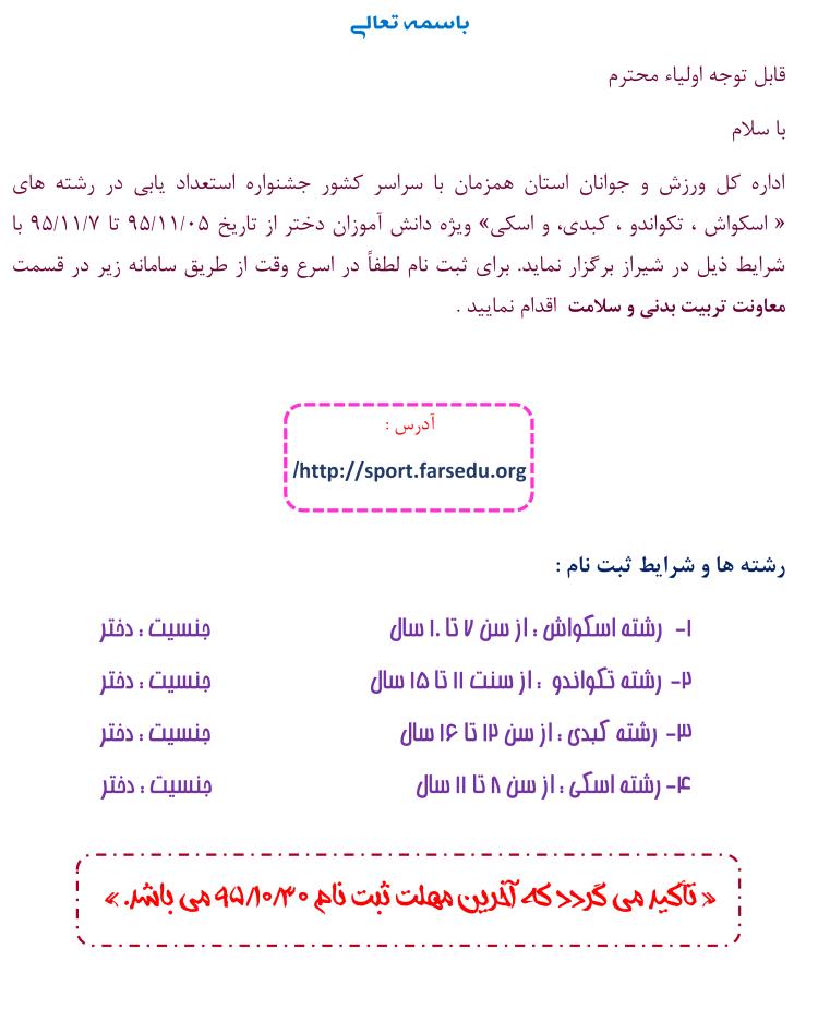 اطلاعیه : جشنواره استعداد یابی