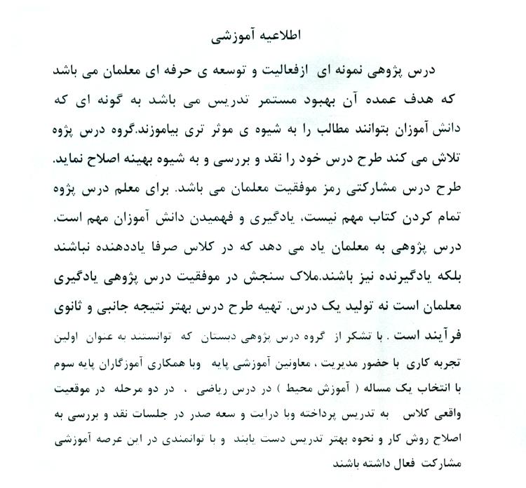 اطلاعیه : درس پژوهی