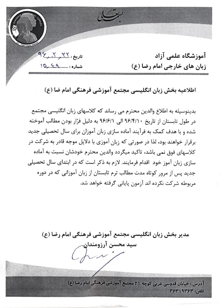 اطلاعیه: برگزاری کلاس زبان تابستان