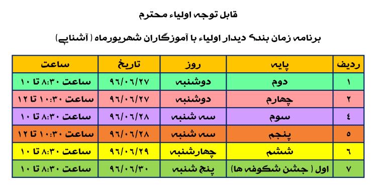 برنامه زمان بندی دیدار اولیاء با آموزگاران