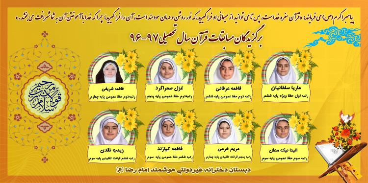 ستارگان قرآن و عترت دبستان دخترانه غیردولتی هوشمند امام رضا(ع)