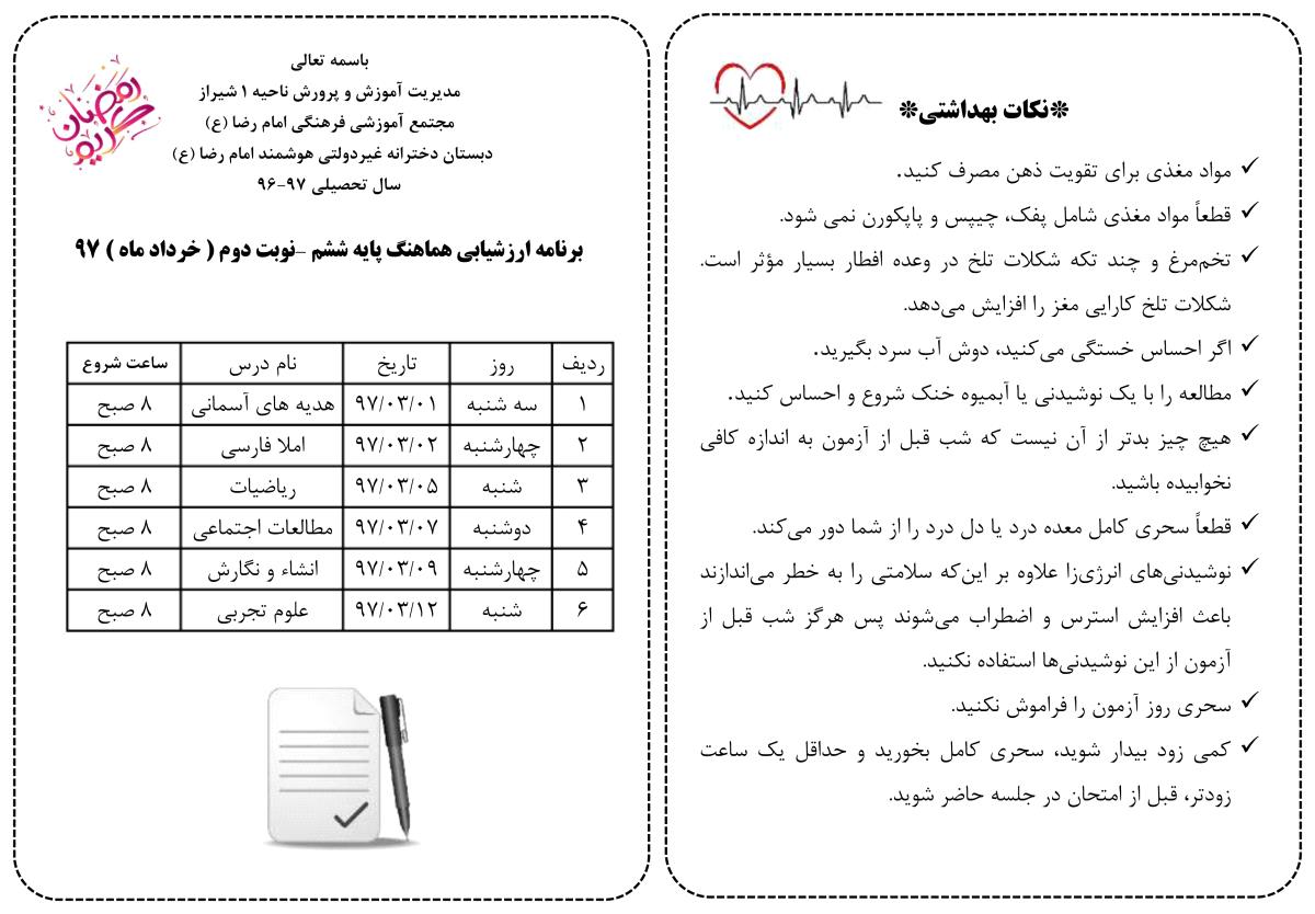 برنامه ی ارزشیابی هماهنگ پایه ی ششم