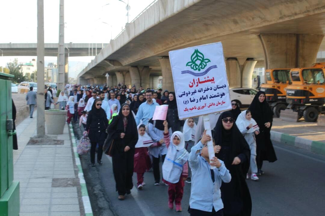 پیاده روی از خانه تا مدرسه بطور هماهنگ در روز سه شنبه 24/07/1397 با همکاری واحد بهداشت دبستان امام رضا (ع) برگزار گردید. در این مراسم دانش آموزان عزیز بهمراه والدینشان در این پیاده روی شرکت کردند. در طول مسیر پرسنل زحمت کش راهنمایی و رانندگی نیز دانش آموزان را همراهی کردند. پس از آن نرمش صبحگاهی همراه با پخش موسیقی ورزشی در مدرسه برگزار شد.