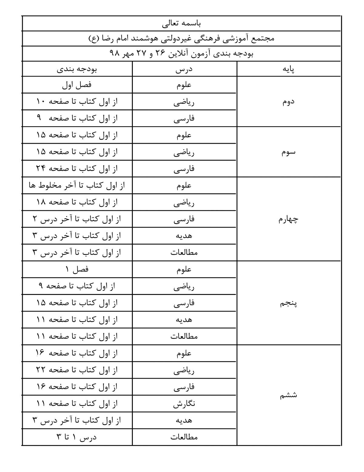 بودجه بندی آزمون آنلاین