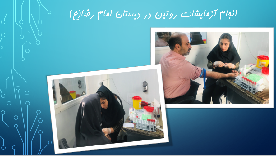 پس ازهماهنگی های واحد بهداشت دبستان با آزمایشگاه درمانگاه فاطمه الزهرا(س) در روز دوشنبه 97/10/03 جهت پرسنل دبستان دخترانه امام رضا (ع) آزمایشات روتین انجام شد.