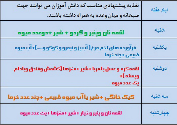 برنامه هفتگی تغذیه هماهنگ