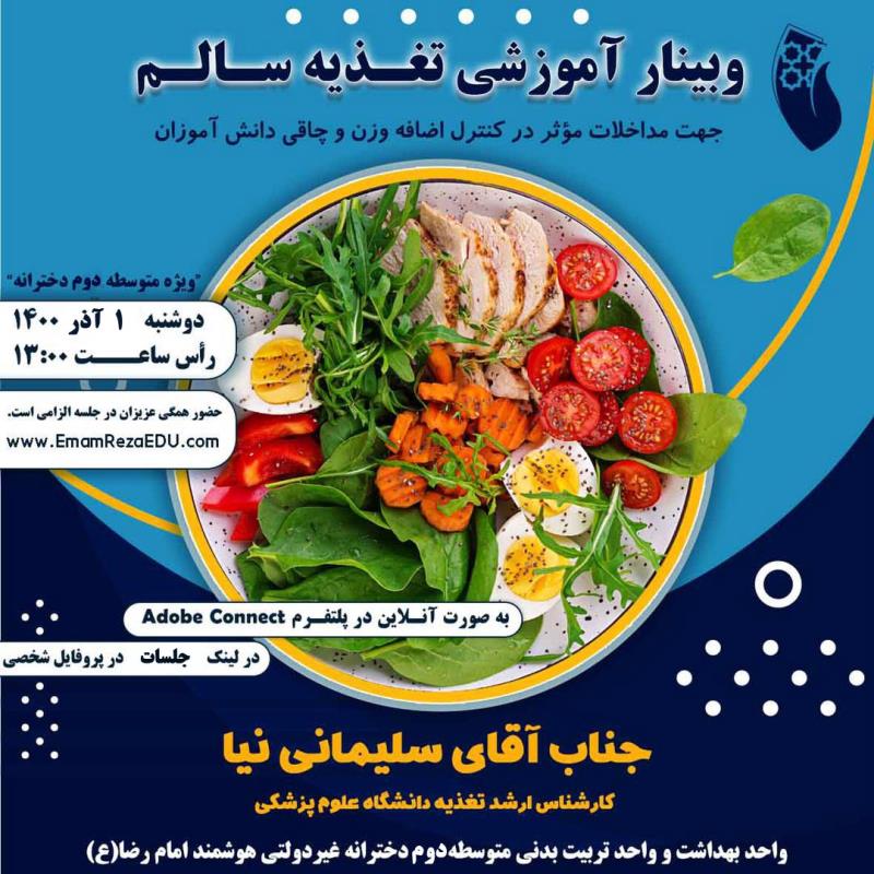 برگزاری وبینار تغذیه ویژه دانش آموزان و اولیا دوشنبه 1 آذر ماه