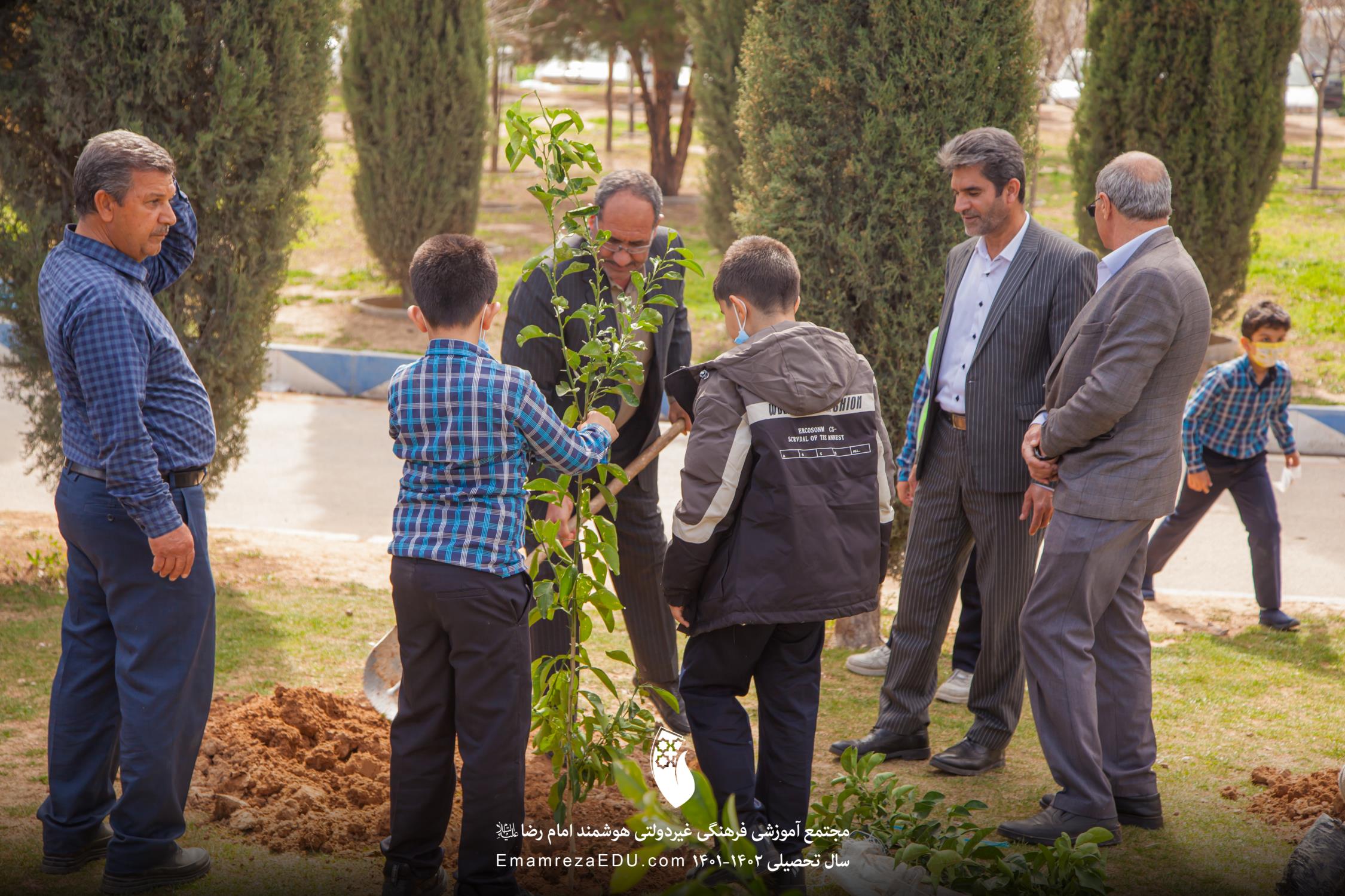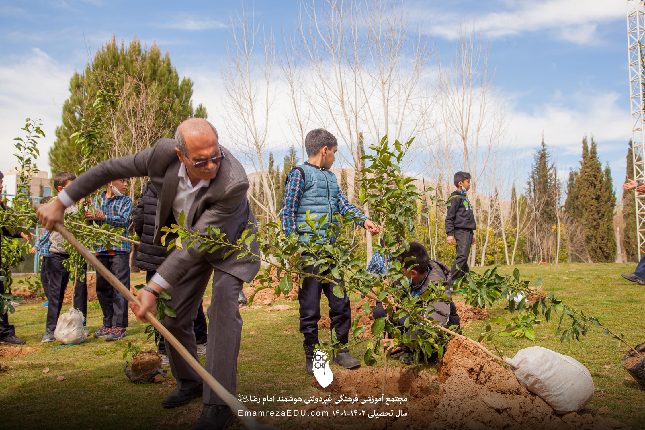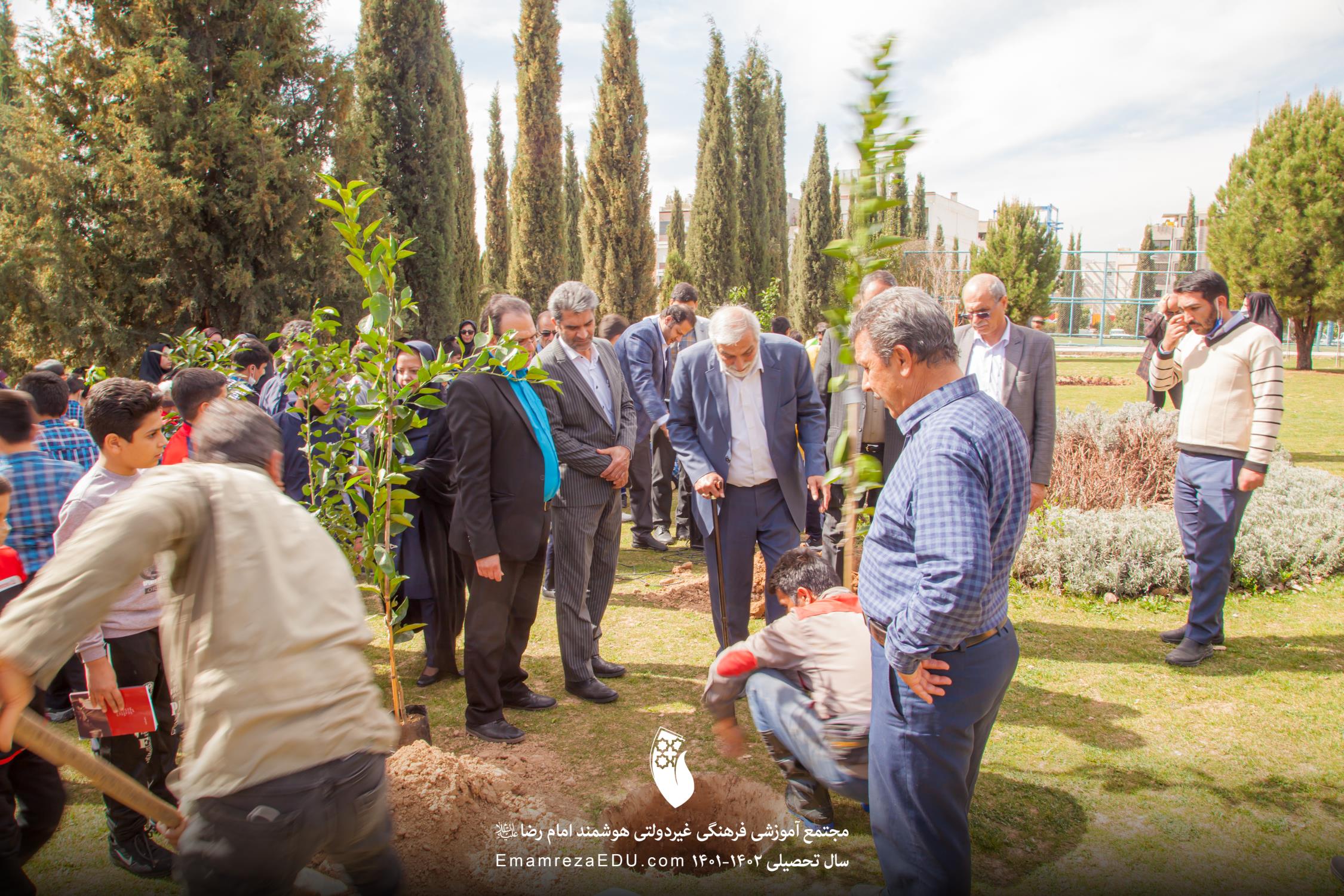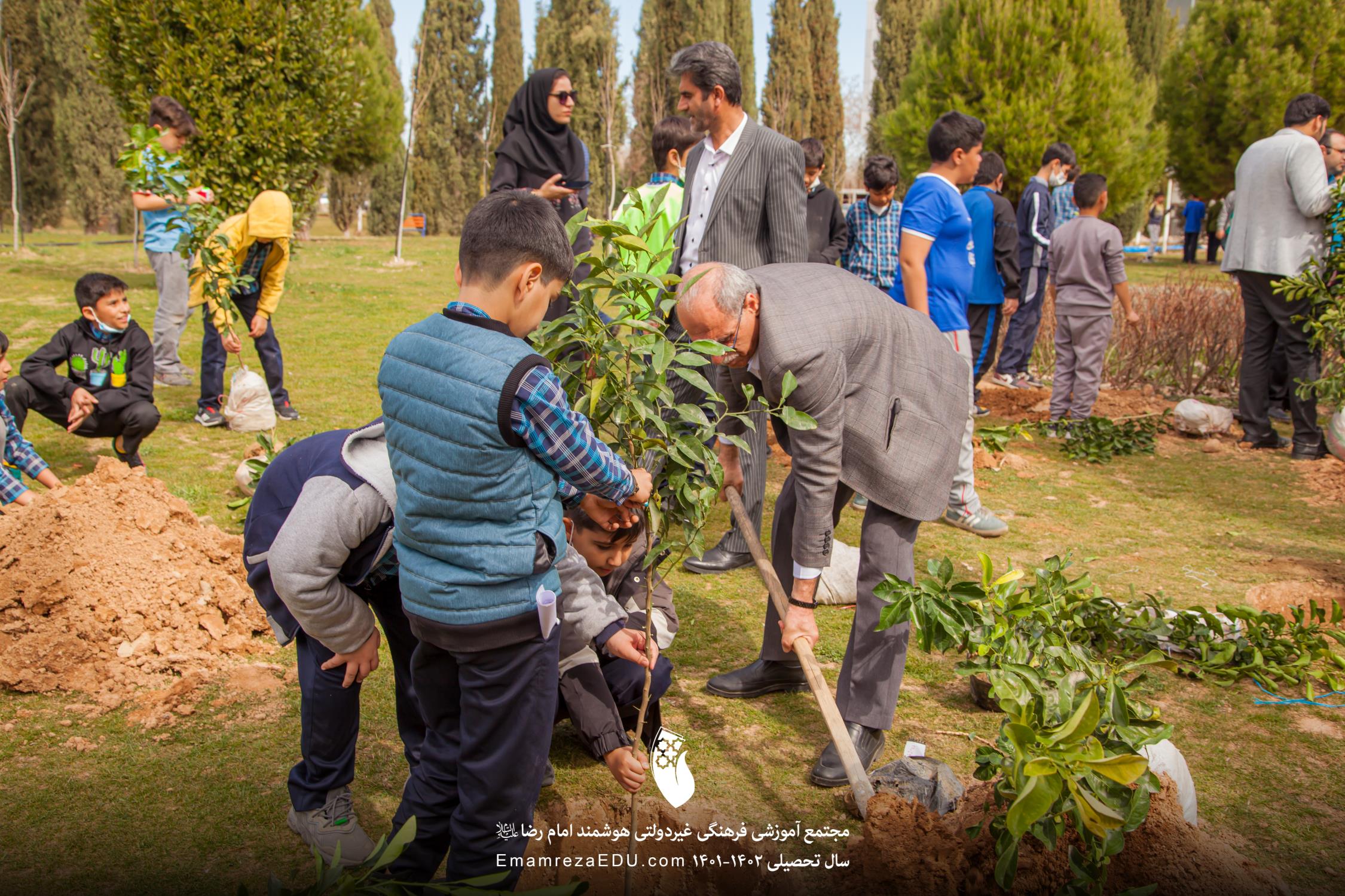کاشت نهال توسط موسس مجتمع، مدیران و دانش آموزان به مناسبت روز درختکاری