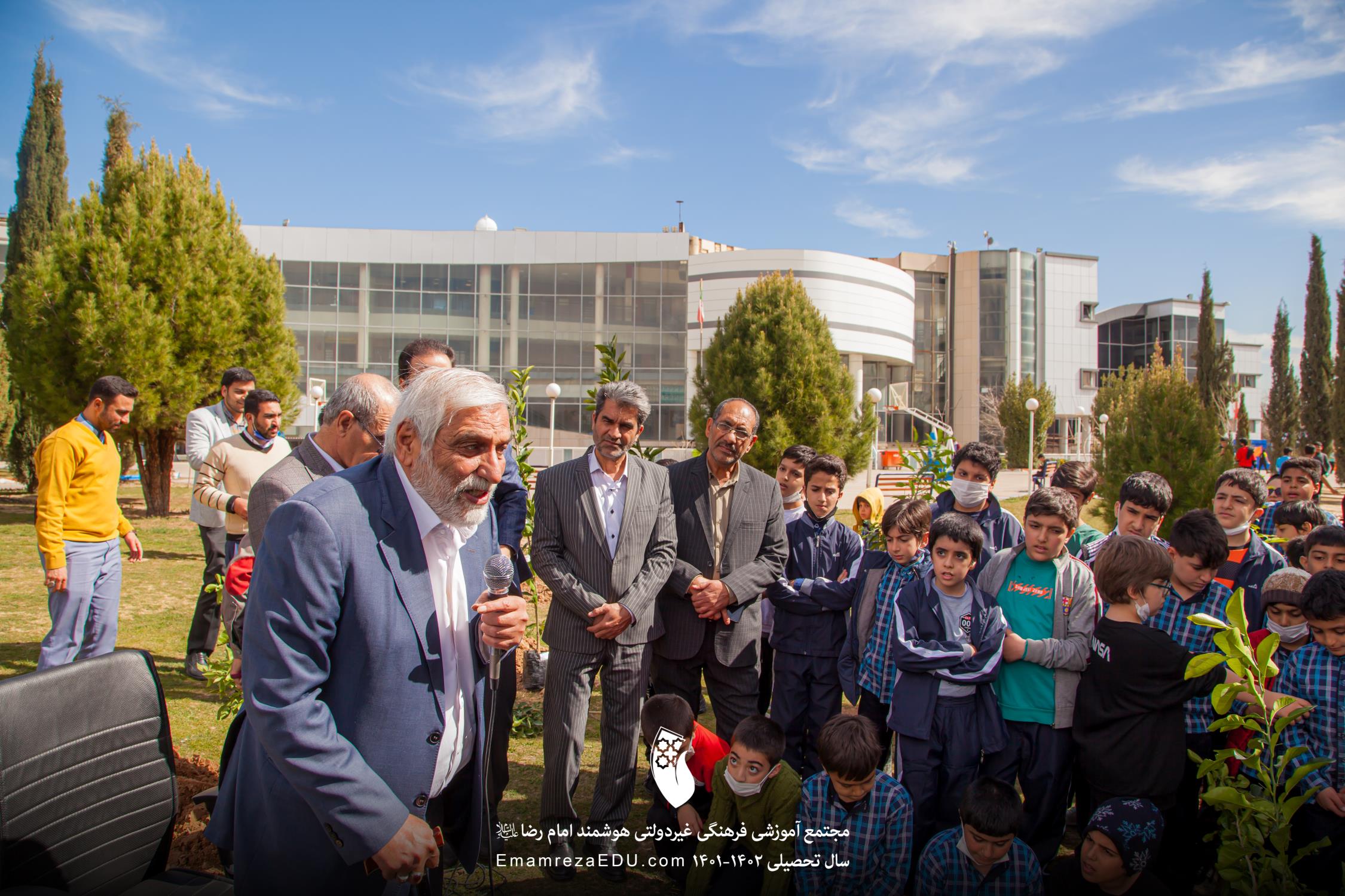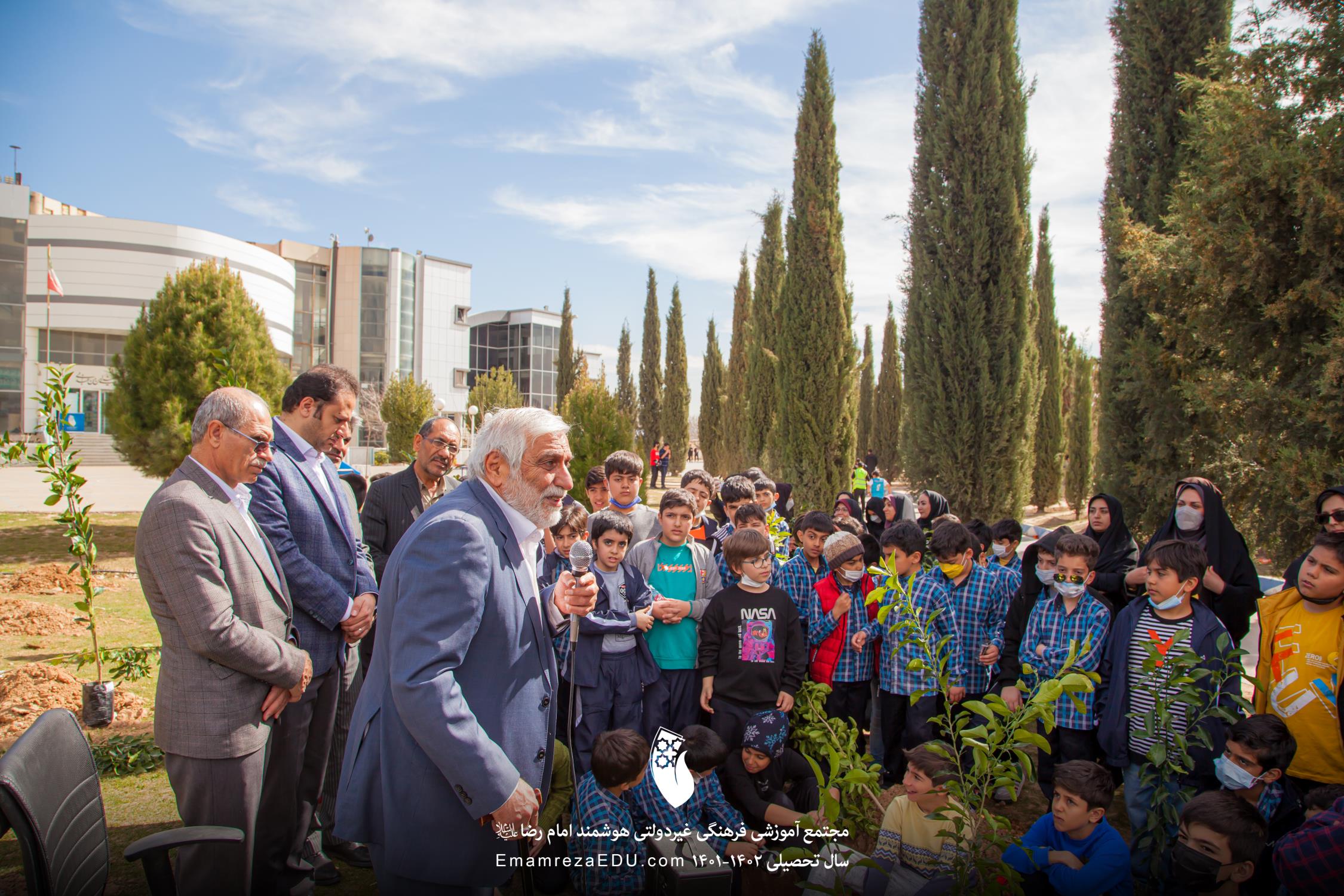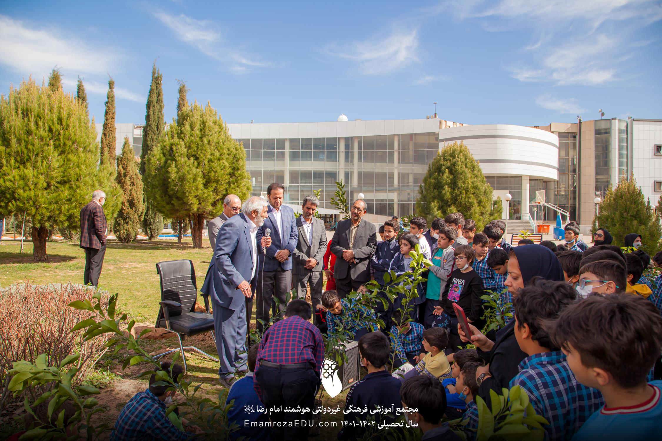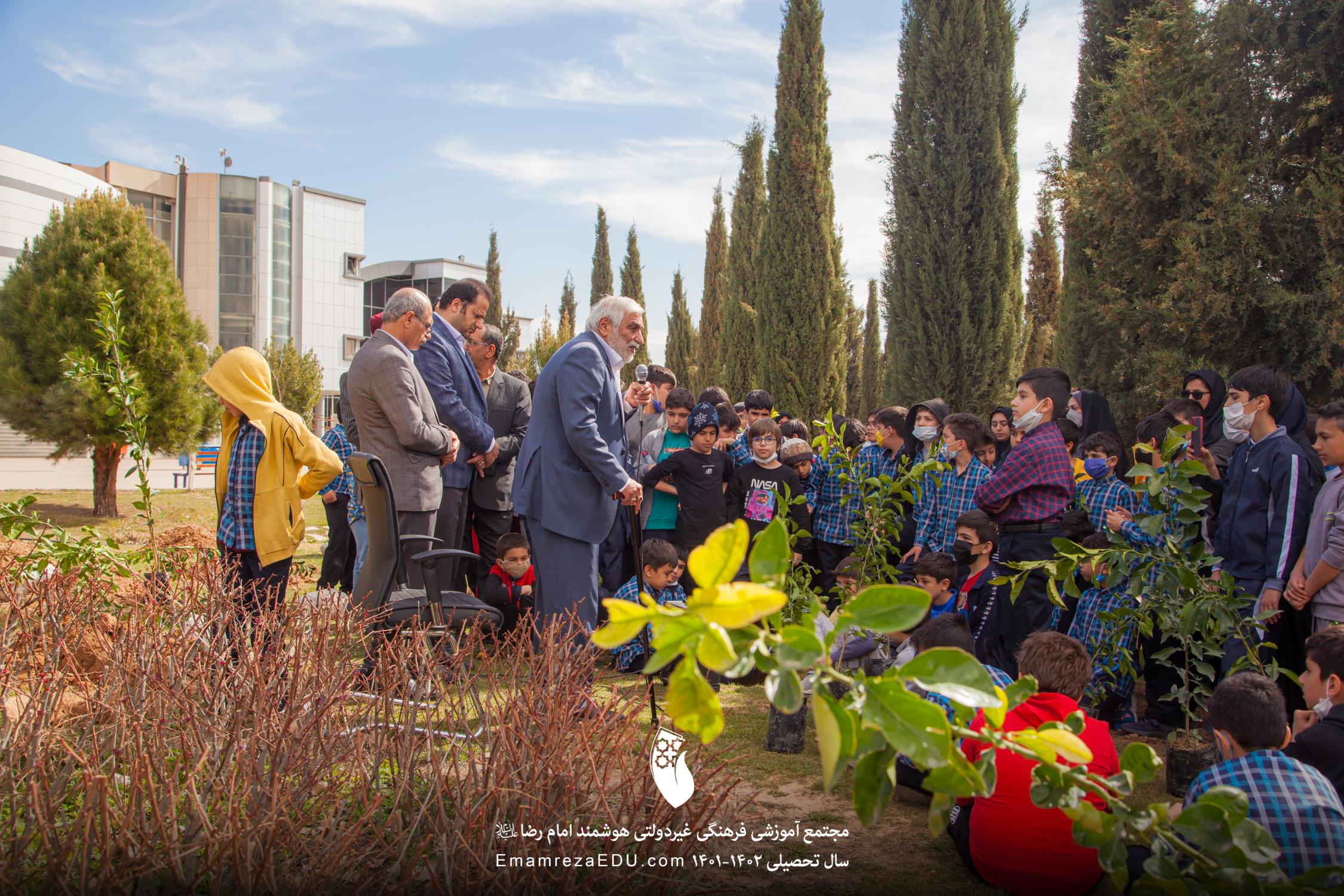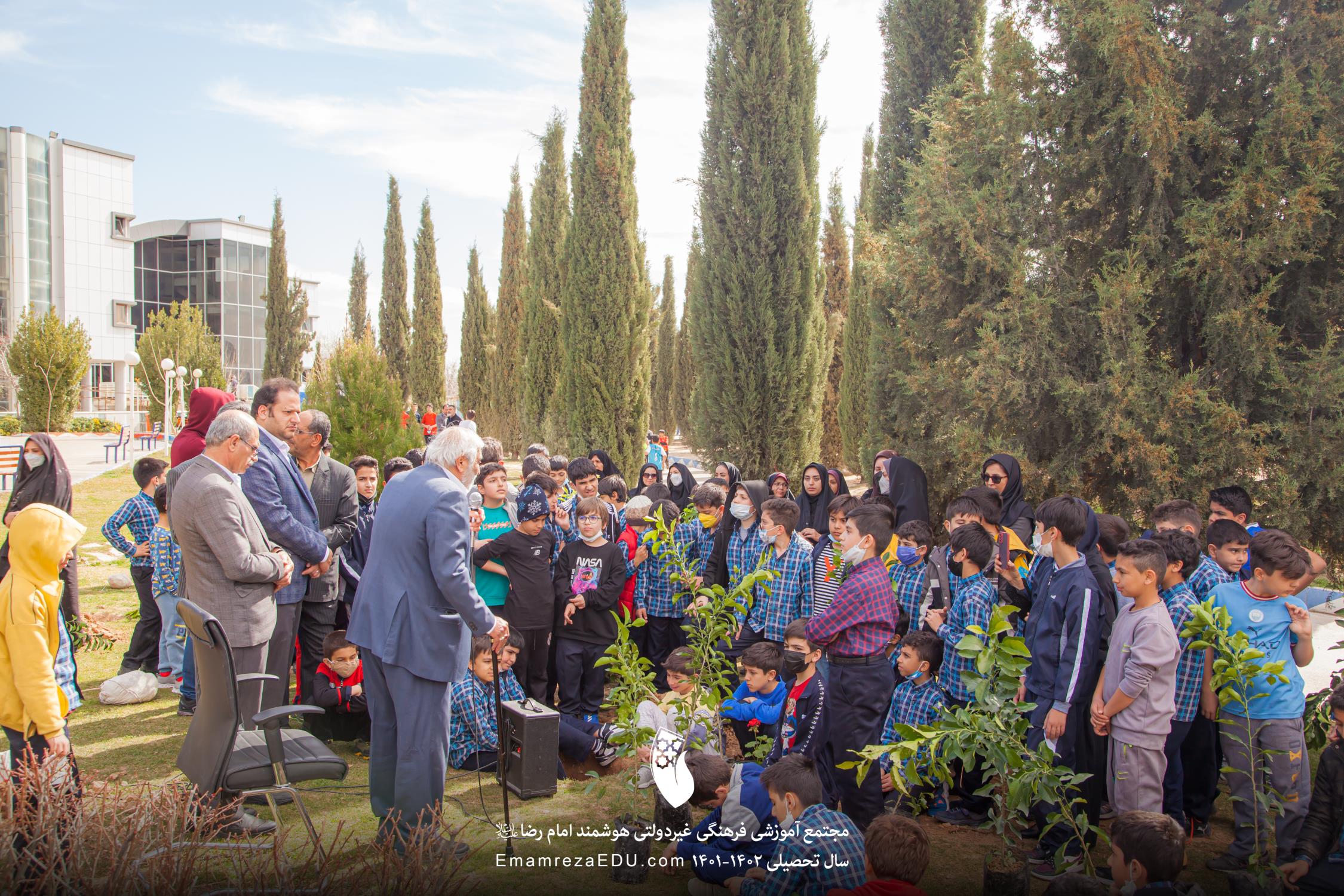 کاشت نهال توسط موسس مجتمع، مدیران و دانش آموزان به مناسبت روز درختکاری