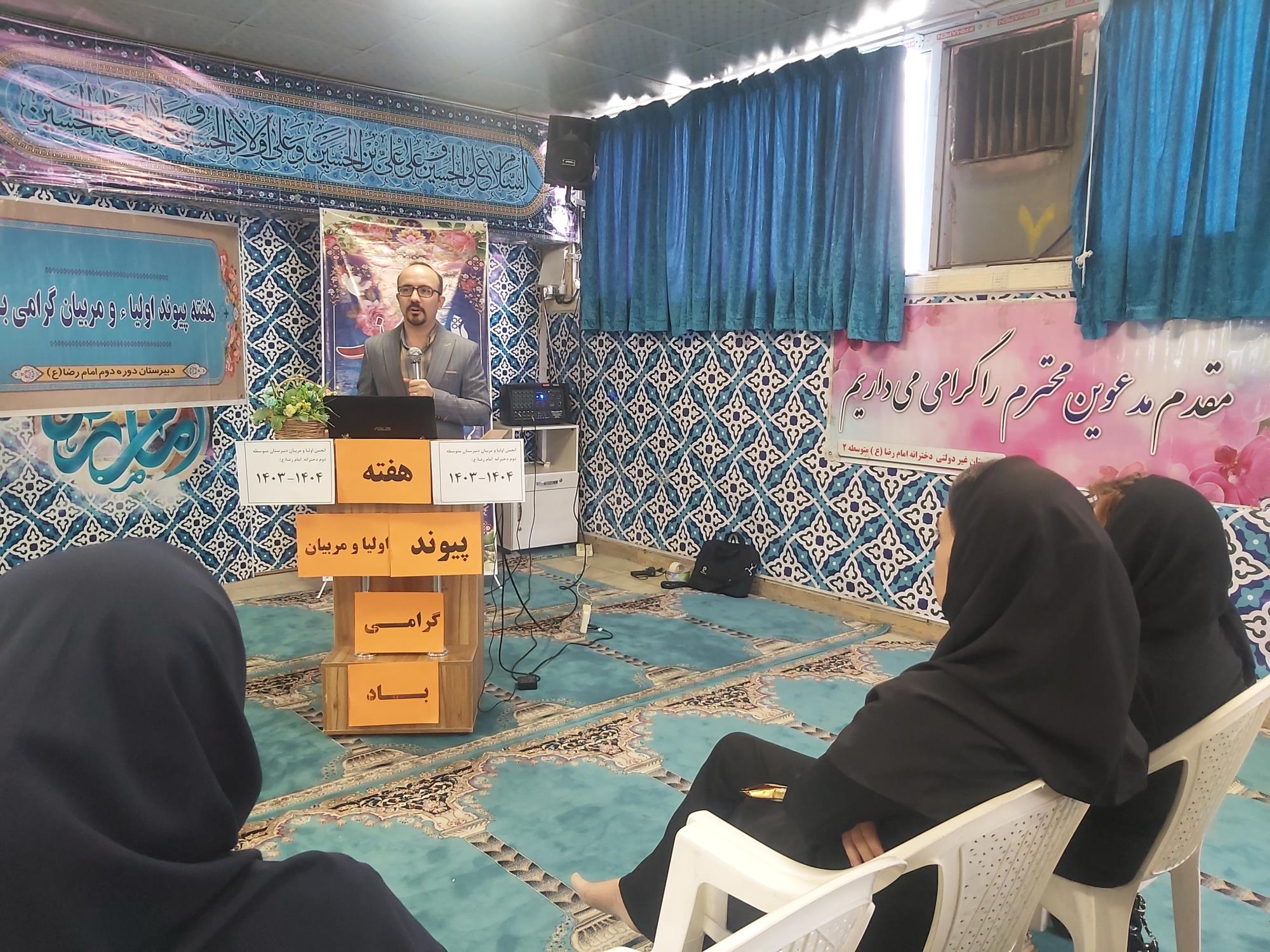 همزمان با هفته پیوند اولیا ومربیان جلسه عمومی انجمن اولیا ومربیان هر سه پایه دهم ،یازدهم ودوازدهم با حضور اولیا گرامی دانش آموزان بر گزار گردید .وسپس با صحبتهای کارشناس مشاورمحترم مجتمع ومدیریت محترم دبیرستان پیرامون مسائل درسی وتحصیل وغیره ..ادامه پیدا کرد.وسپس با رای گیری از بین اعضای داوطلب انجمن اولیا تعداد ۸ نفراز اولیا به عنوان اعضای منتخب انجمن با رای اولیای دانش آموزان عضو انجمن اولیا ومربیان گردیدند..