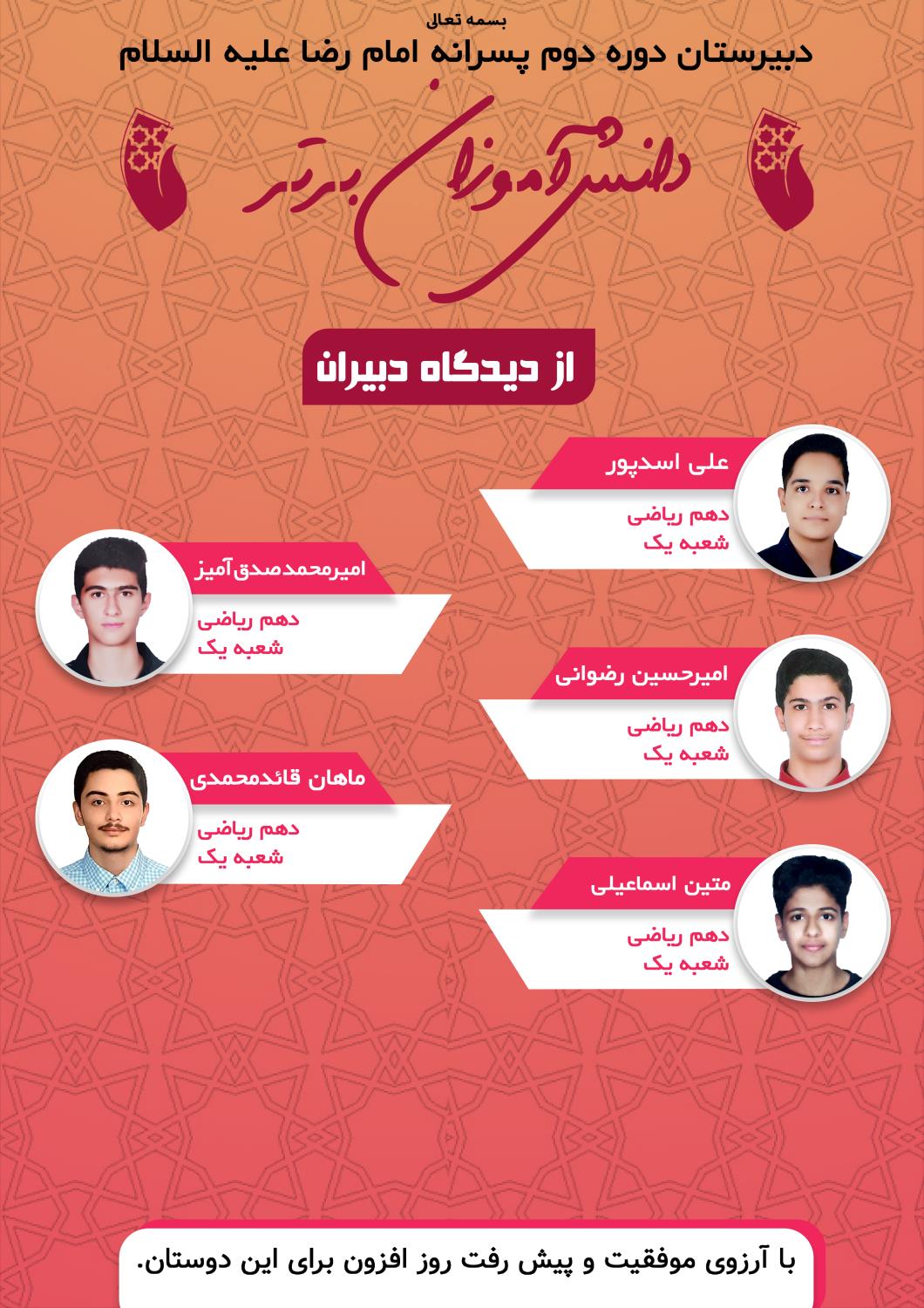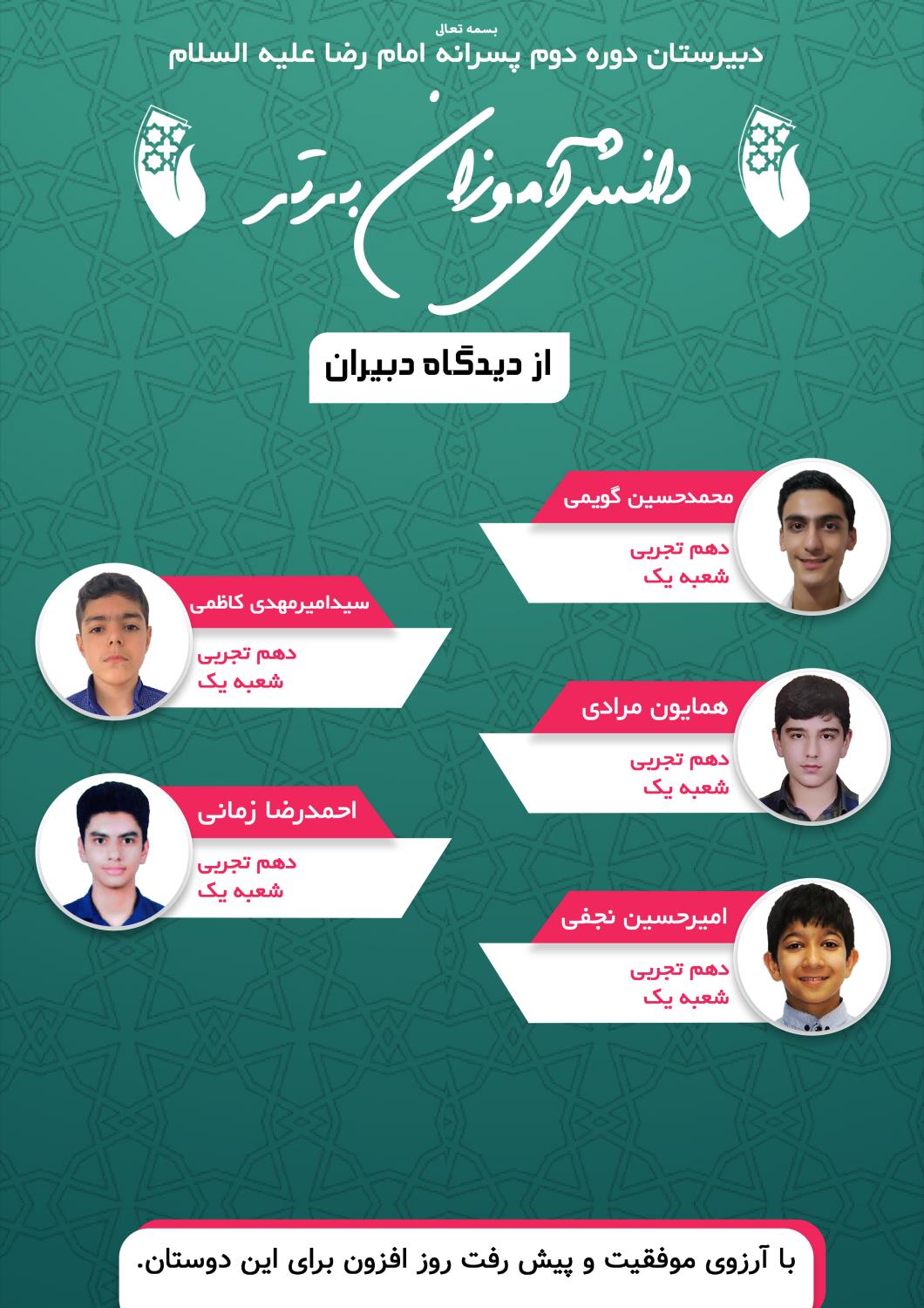 دانش آموزان برتر آموزشی پایه دهم از دیدگاه دبیران