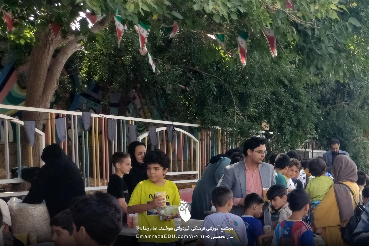 🟢 در روز دوشنبه ۲۷ مرداد، حیاط دبستان امام رضا علیه السلام با عطر نذریهایتان، بوسهباران مِهر خاندان نبوت شد.