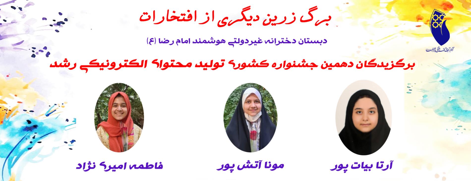 💫انتخاب دانش آموزان عزیز دبستان دخترانه امام رضا در دهمین جشنواره کشوری تولید محتوای الکترونیکی رشد