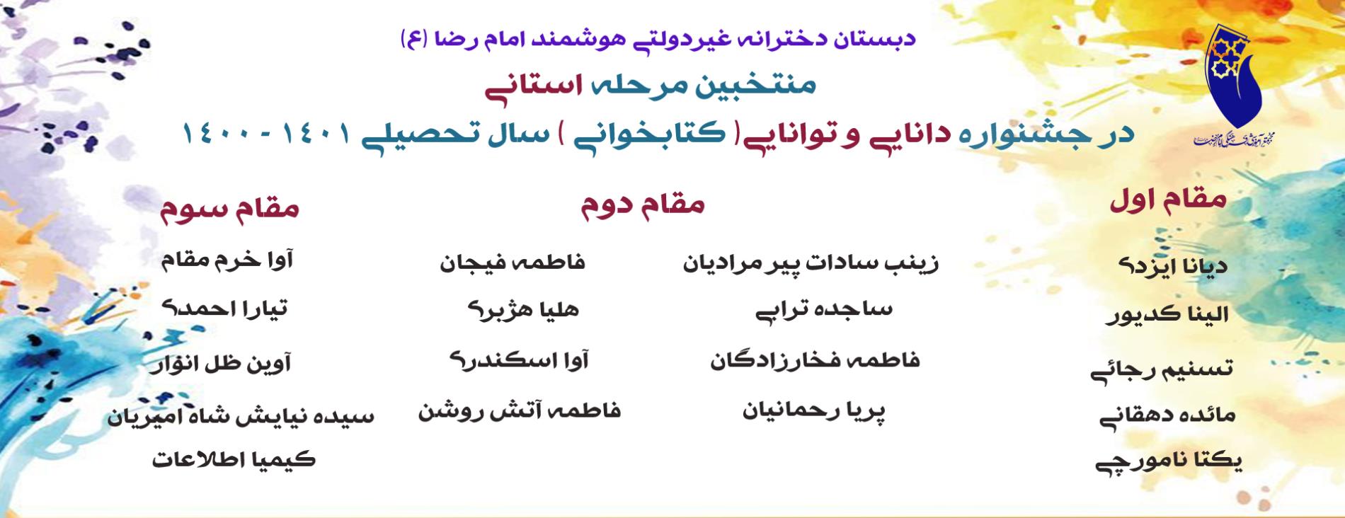 منتخبین مرحله استانی جشنواره دانایی و توانایی ( کتابخوانی ) سال تحصیلی 1401- 1400