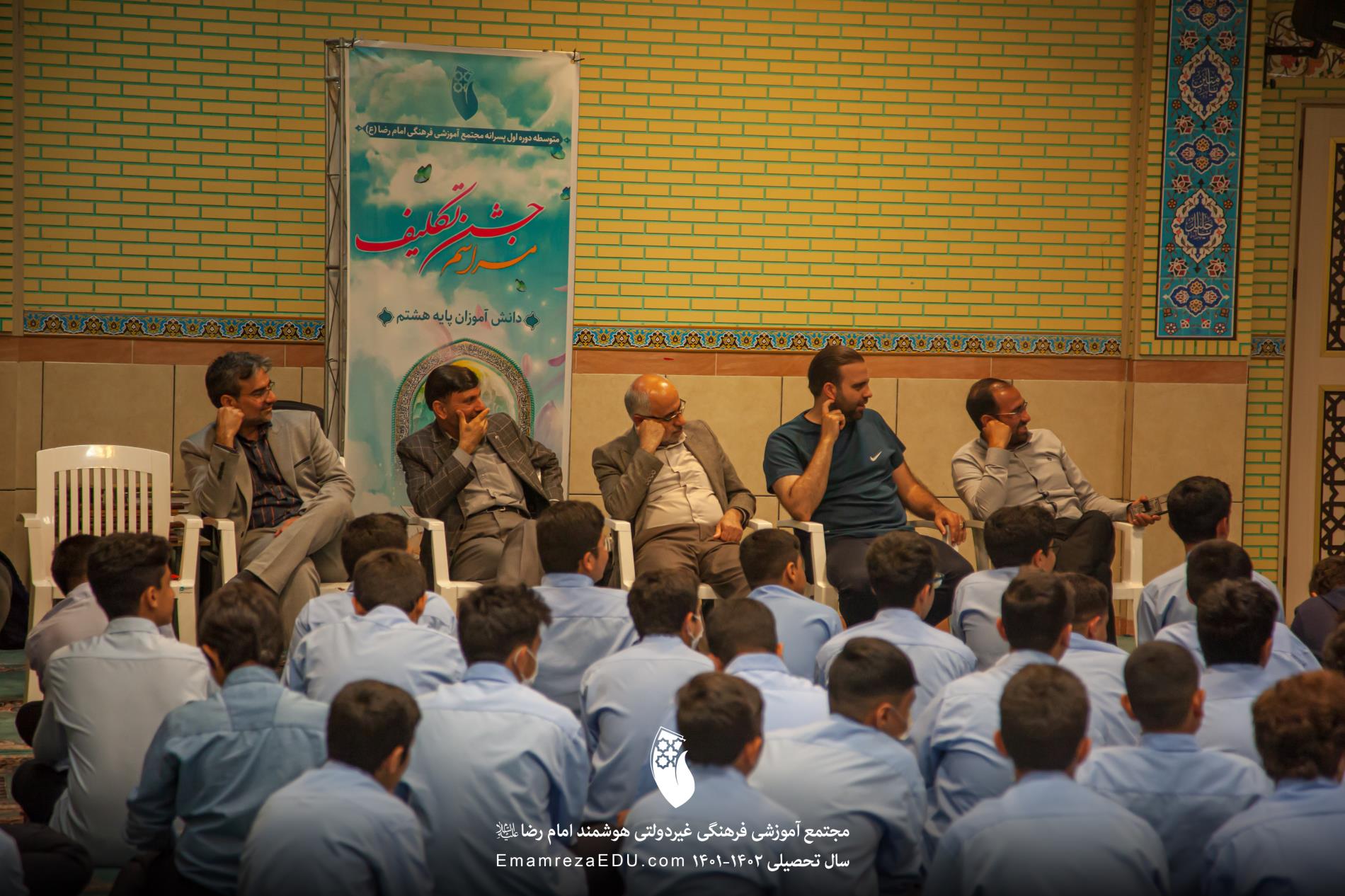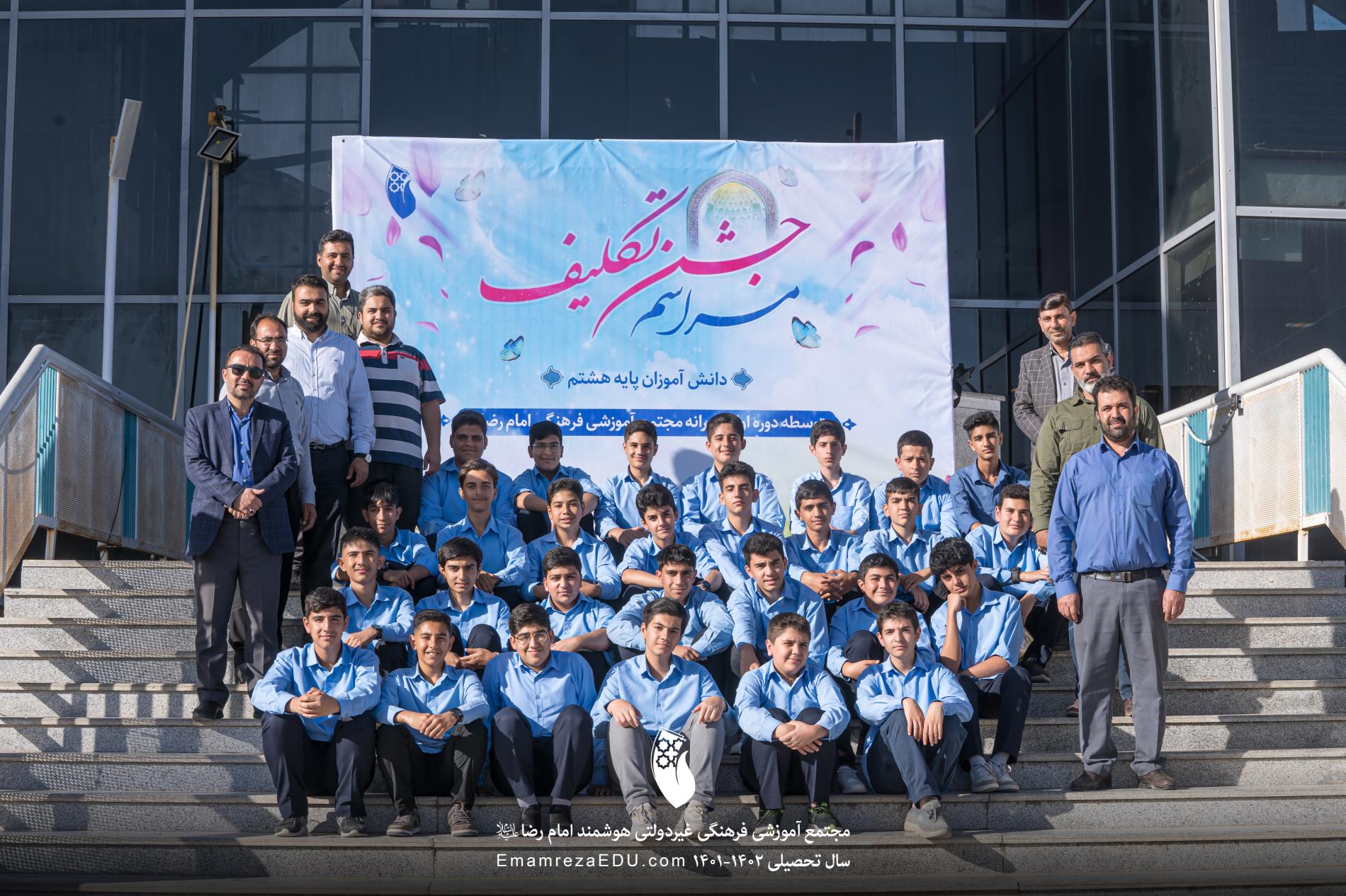 جشن تکلیف کلاس هشتم امسال با رویه ای متفاوت نسبت به سالهای قبل انجام شد و درکنار کارشناسان مذهبی برنامه های شاد ومتنوع ورزشی انجام گردید جای دارد از مدیریت محترم جناب آقای دانشمند جناب آقای عابدی بعنوان مدیرفرهنگی مجتمع تیم رسانه ای مجتمع جناب آقای حامد زارع وهمکارانشان دبران ورزش ومعاونین همیشه پای کار بخاطر حمایت وحضور دربرنامه تشکر کنیم برنامه در روز11 اردیبهشت درمحل مجتمع برگزار گردید.