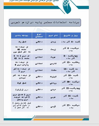 تغییرات بودجه بندی امتحانات آذرماه دوازدهم رشته ریاضی