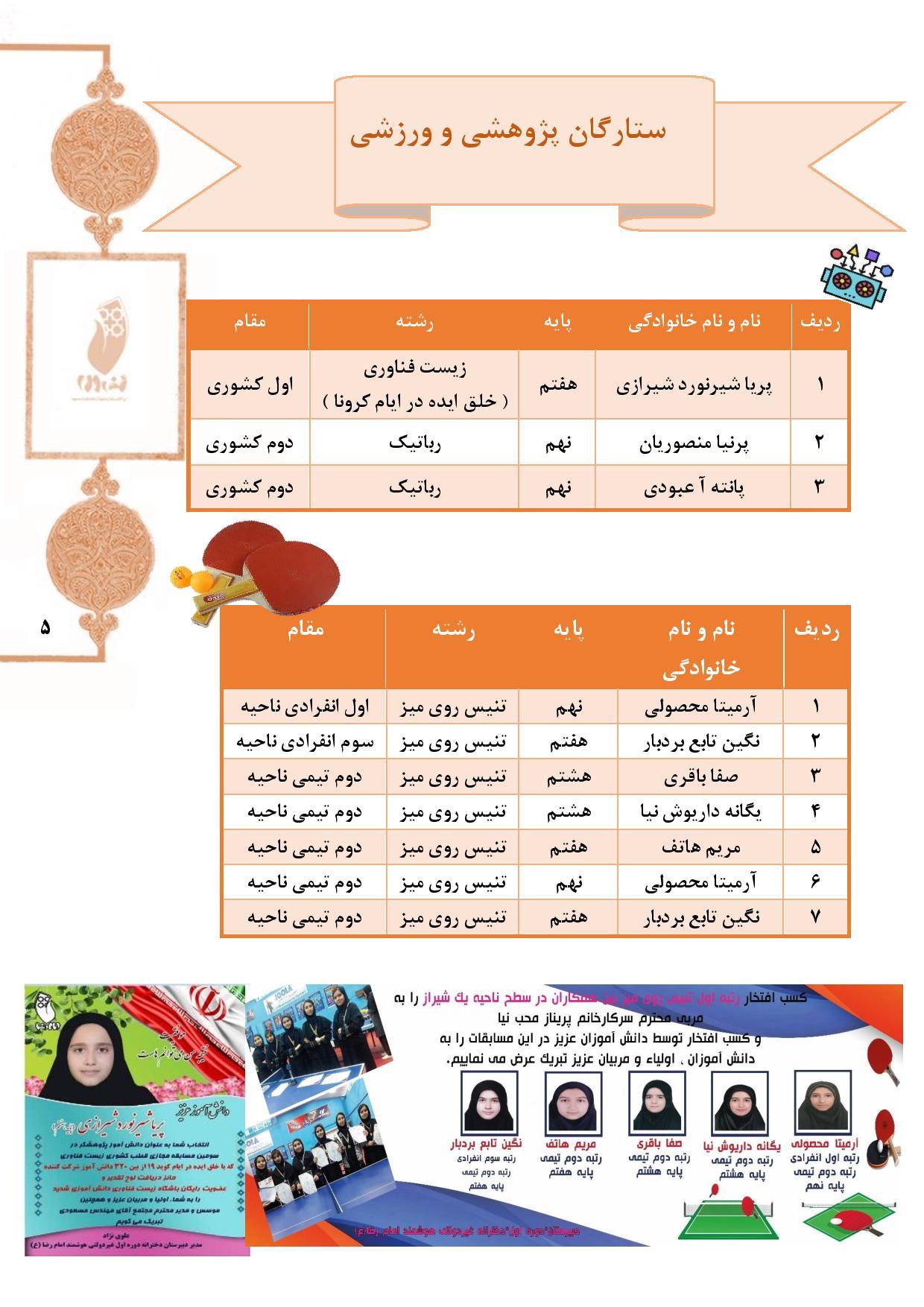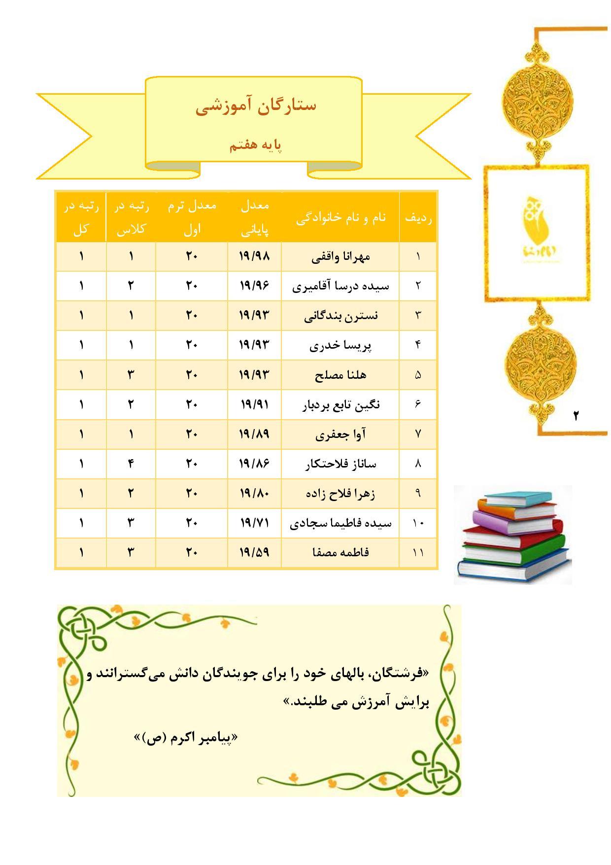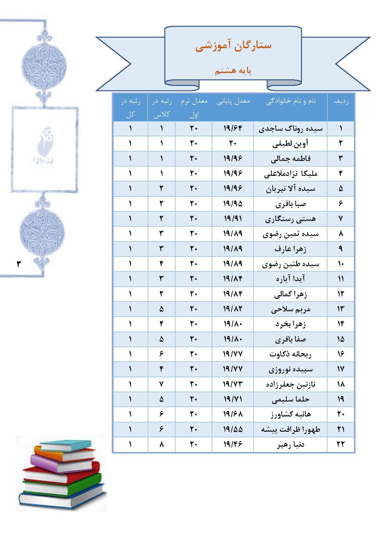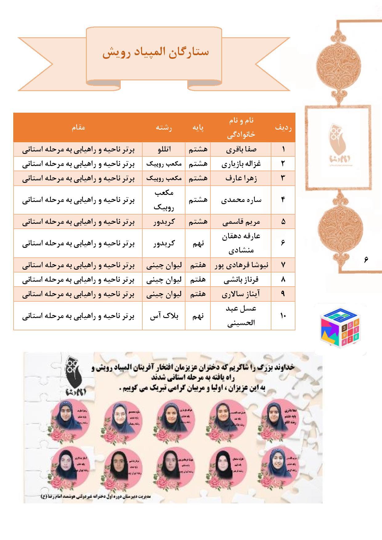 دفترچه افتخارات دبیرستان دخترانه دوره اول