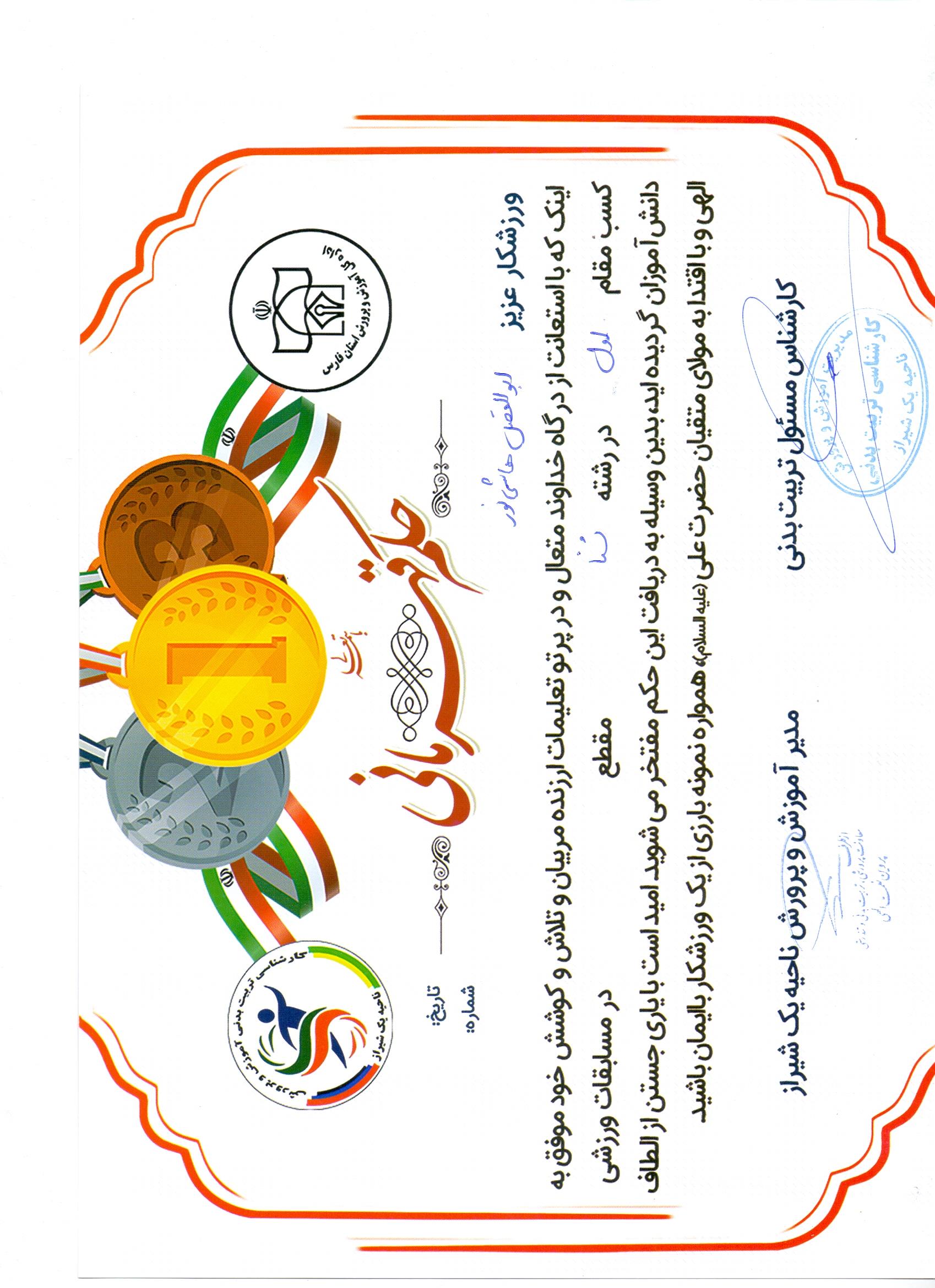 آقای ابوالفضل هاشمی نور از پایه یازدهم و آقای محمد هادی پولادیان از پایه دهم موفق به کسب مقام قهرمانی در مسابقات شنا