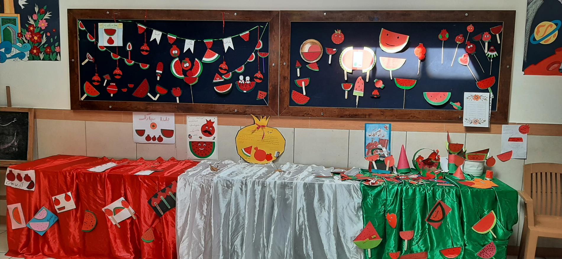 در حاشیه این مراسم و به مناسبت یلدا نمایشگاه هنری دانش آموزان هم در راهرو دبستان برگزار شد.