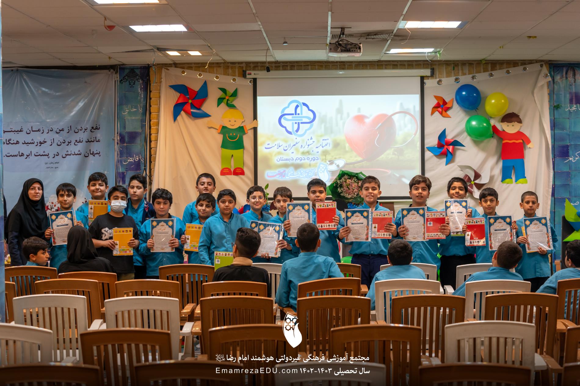 در پی انتخاب دانش آموزان علاقه مند به شرکت در فعالیتهای بهداشتی به عنوان سفیر سلامت در طول سال تحصیلی با هدف انتقال مفاهیم بهداشتی توسط دانش آموزان آموزش دیده به گروه همسالان ، جهت تقدیر و تشکر از این عزیزان و به پاس موفقیت در وظایف محوله و ایجاد انگیزه برای مشارکت دانش آموزان دیگر جشن اختتامیه سفیران سلامت در تاریخ 19 اردیبهشت سال 1403 همراه با اهدای لوح تقدیر و جایزه و پذیرایی برگزار گردید.