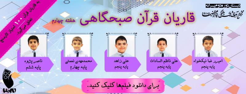 از اینجا میتوانید برای دانلود فیلم قرآن صبحگاهی دانش آموزان هفته چهارم اقدام کنید.