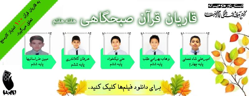 از اینجا میتوانید برای دانلود فیلم قرآن صبحگاهی دانش آموزان هفته هفتم اقدام کنید.