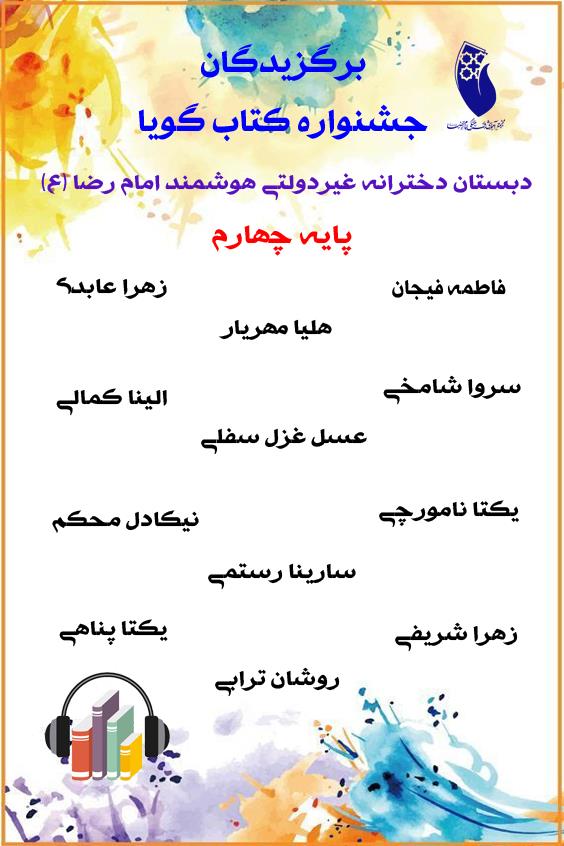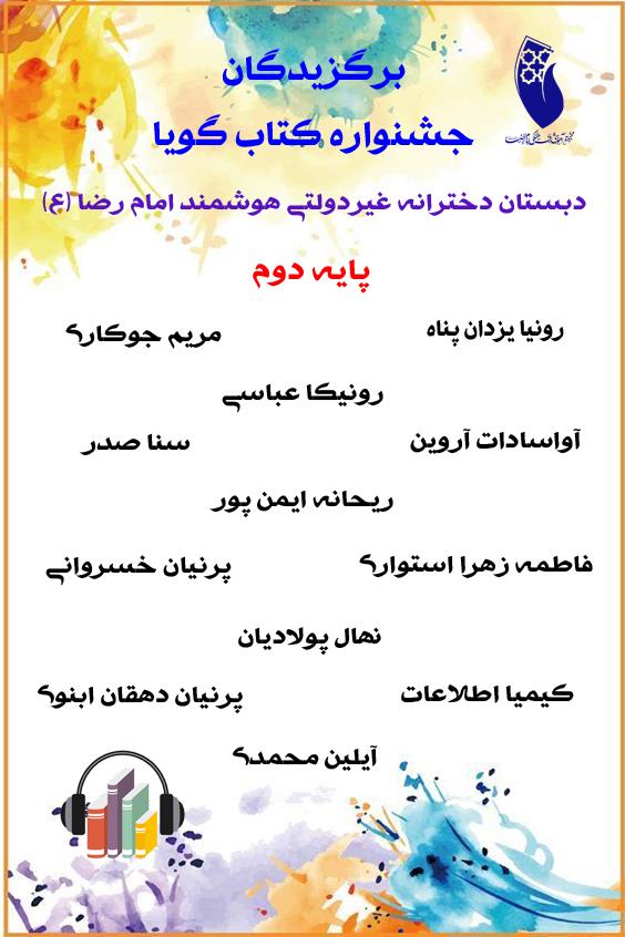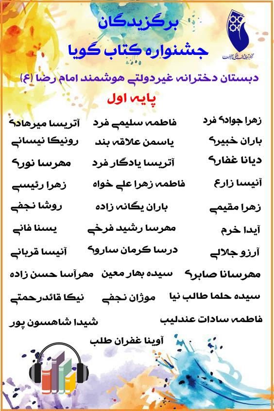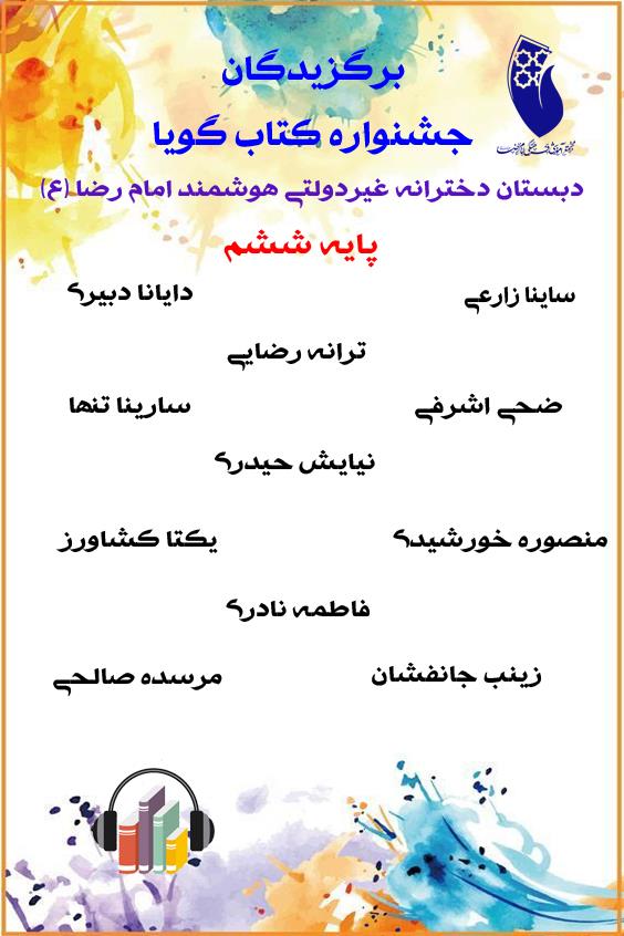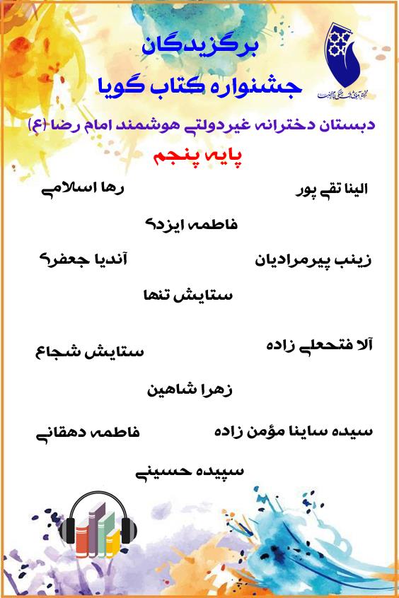 اسامی برگزیدگان جشنواره کتاب گویا دبستان دخترانه امام رضا (ع)
