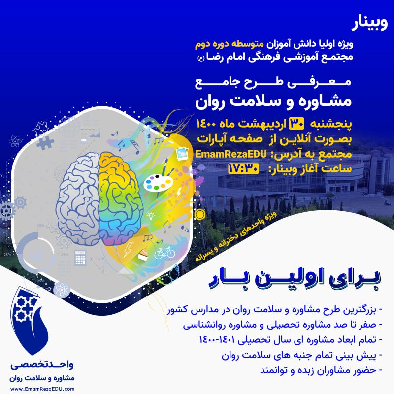 لیست خدمات واحد مشاوره و سلامت روان مجتمع آموزشی فرهنگی امام رضا علیه السلام