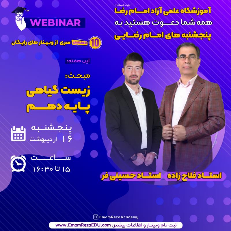 وبینار زیست پایه دهم برگزار می گردد