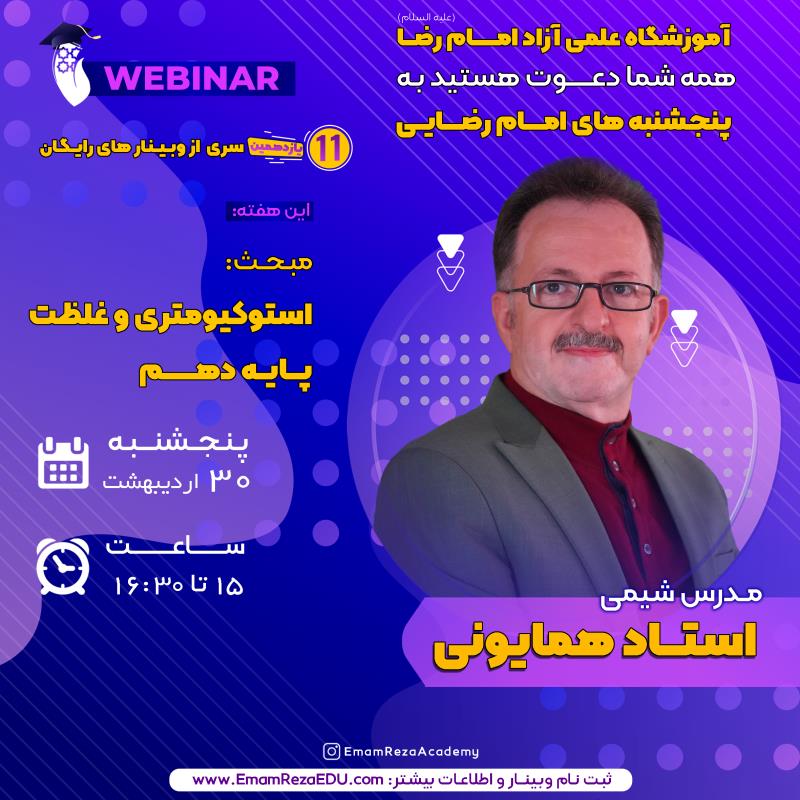 وبینار شیمی پایه دهم برگزار می گردد