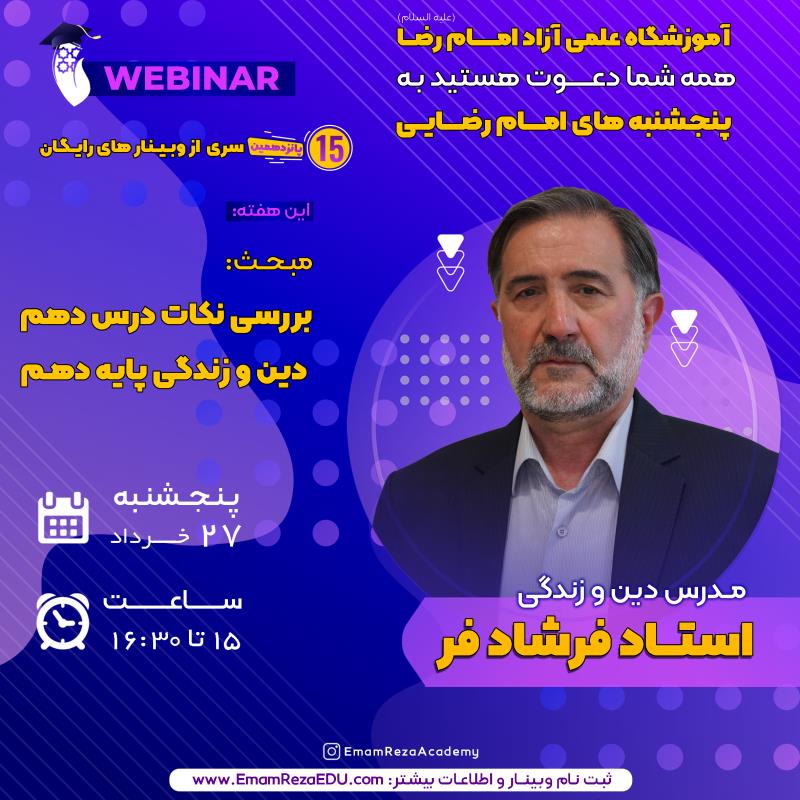 وبینار دین و زندگی پایه دهم برگزار می گردد