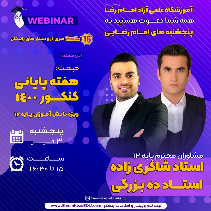 وبینار مشاوره هفته پایانی کنکور 1400 برگزار می گردد