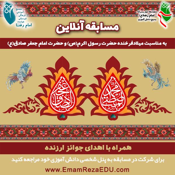اعلام اسامی نفرات برگزیده مسابقه فرهنگی آنلاین میلاد حضرت رسول اکرم (ص) و حضرت امام جعفر صادق (ع)