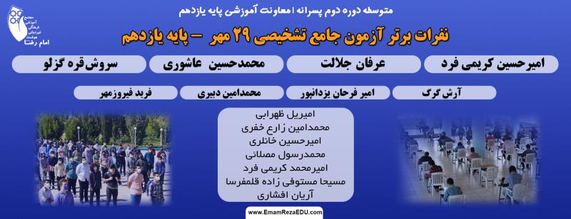 اعلام اسامی نفرات برتر آزمون جامع تشخیصی 29 مهر پایه یازدهم